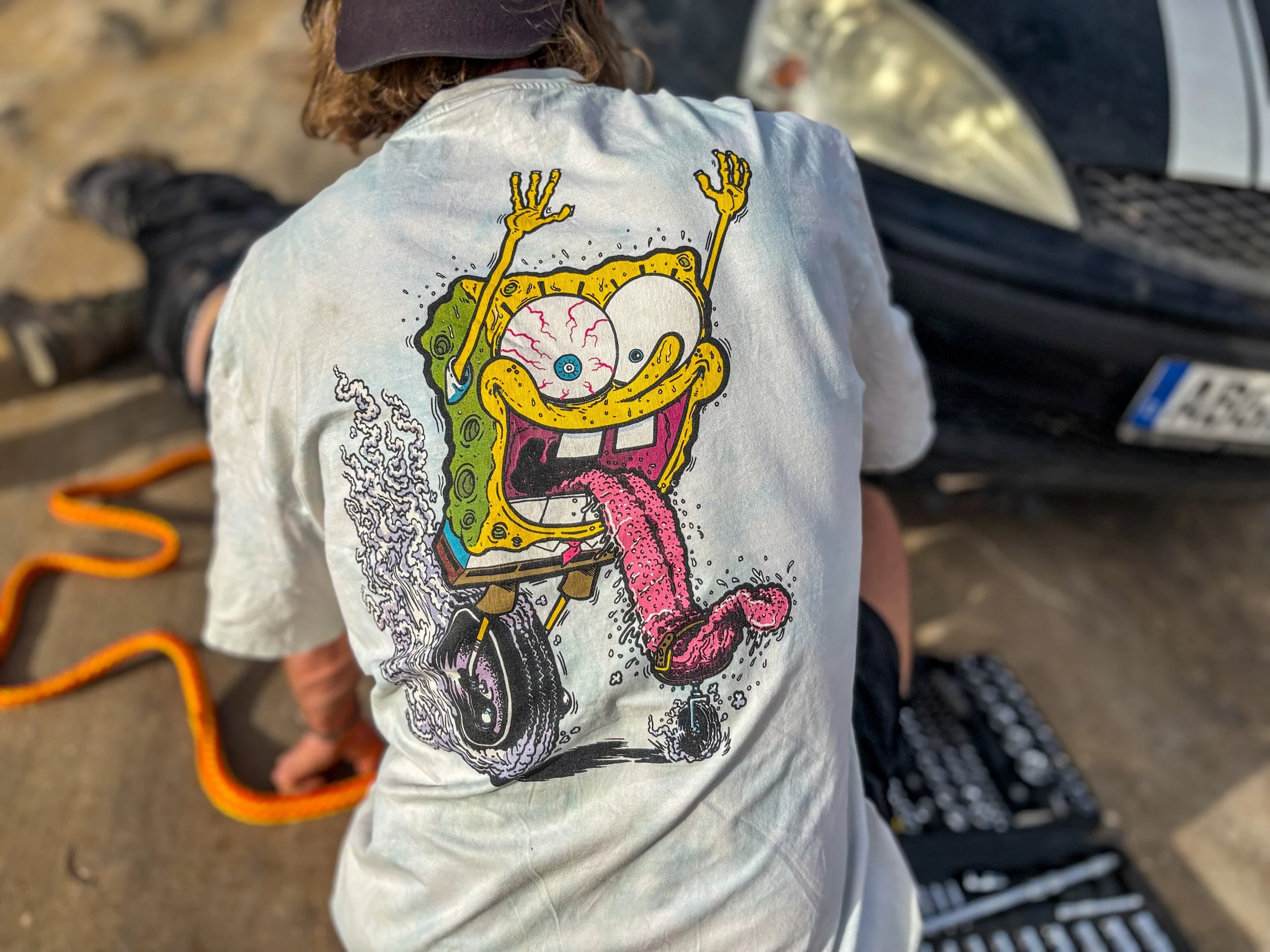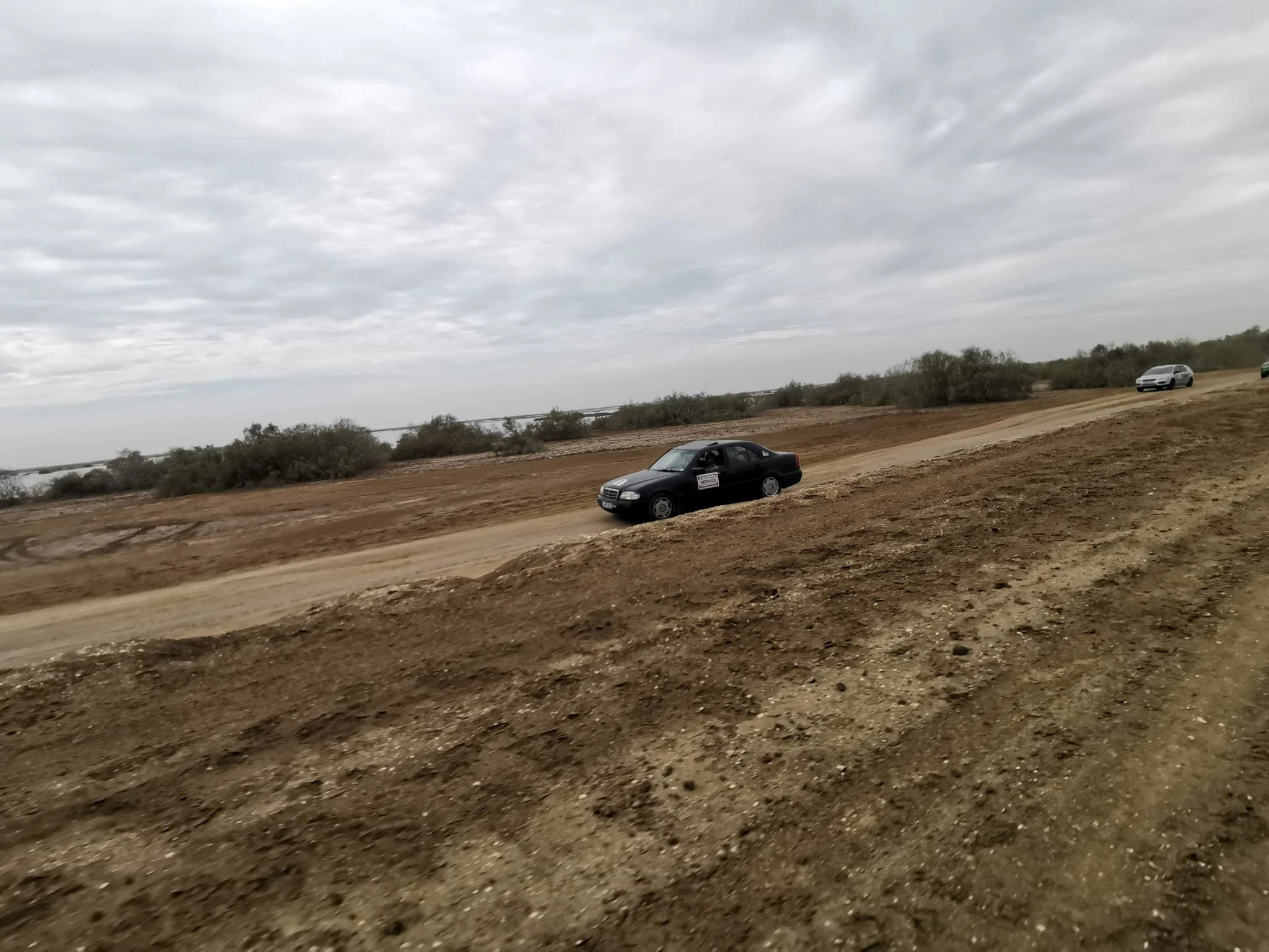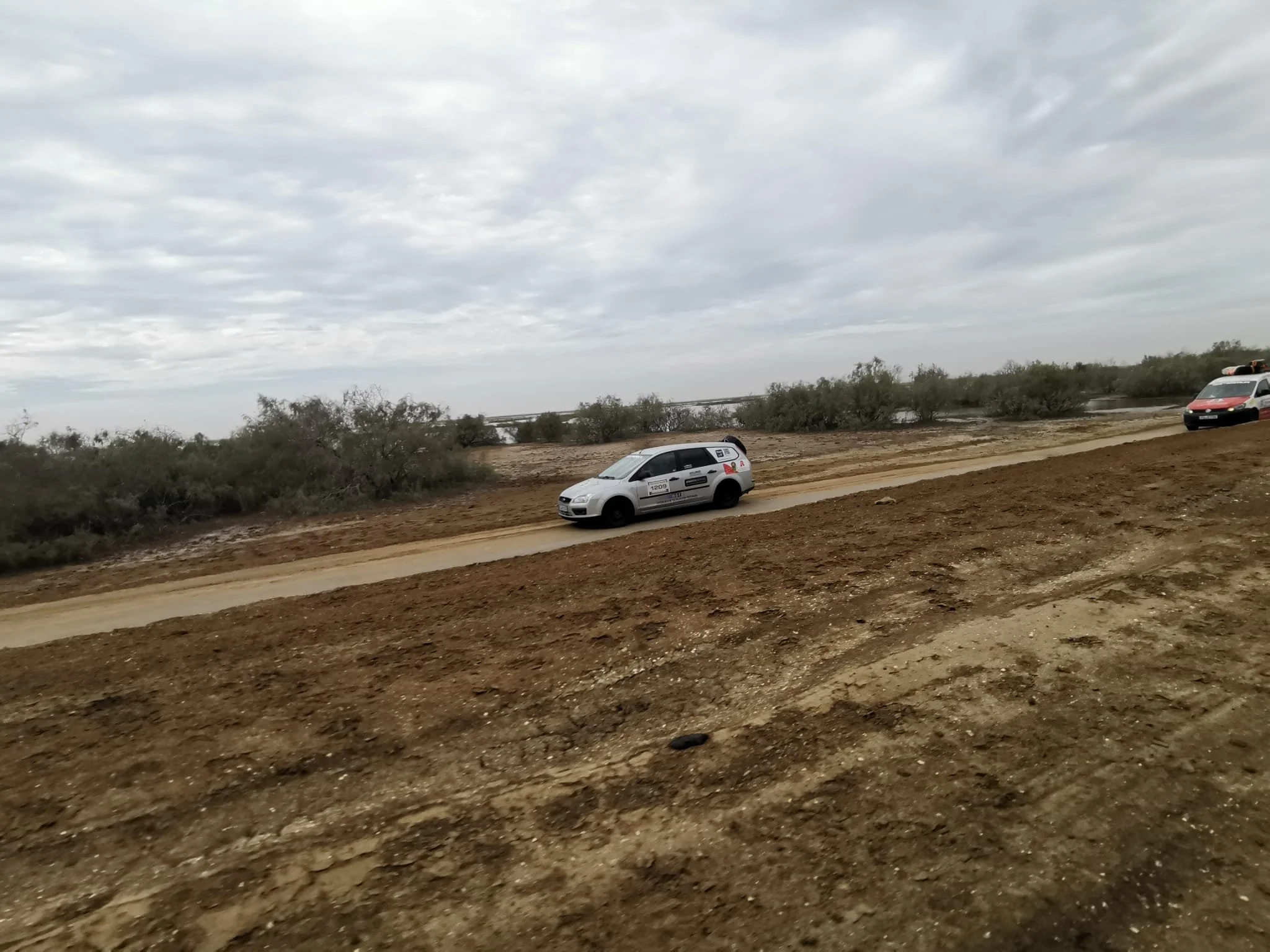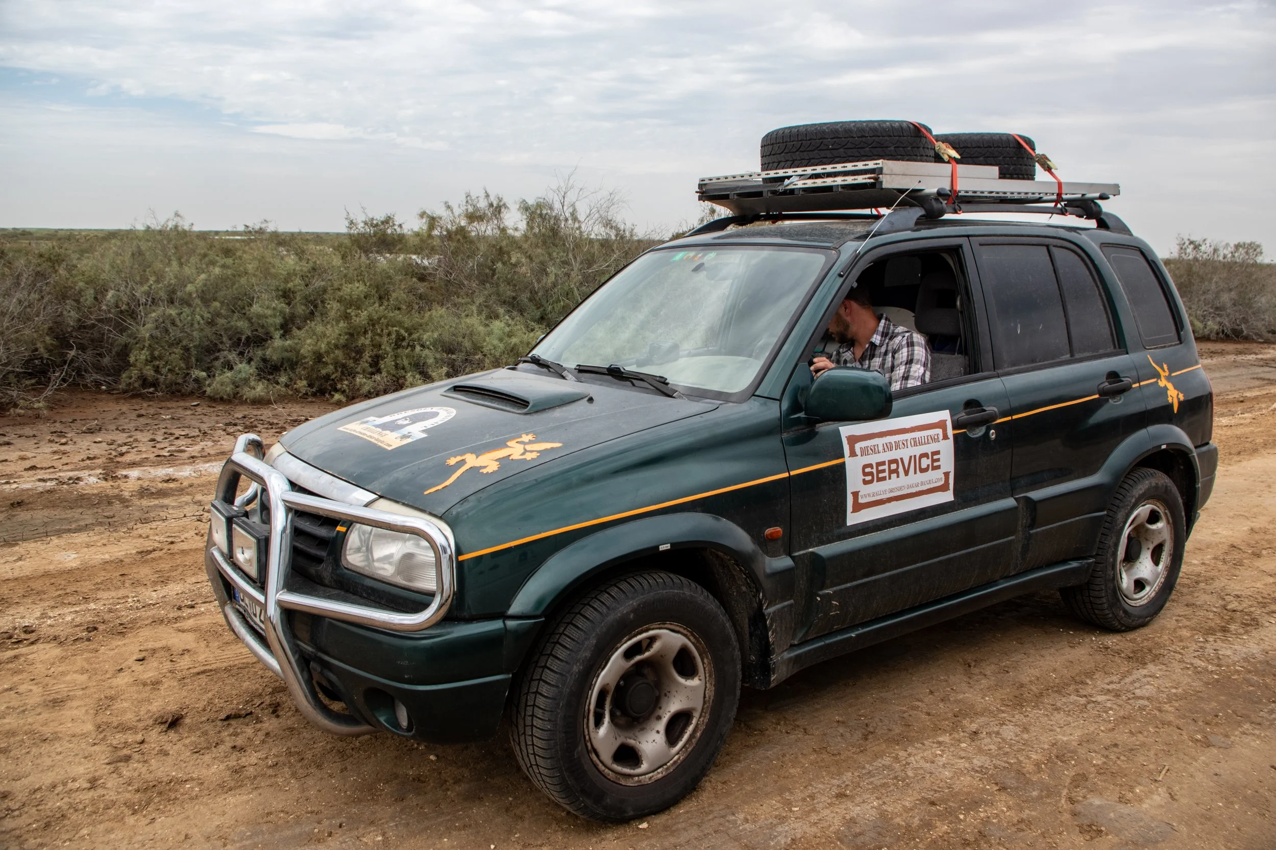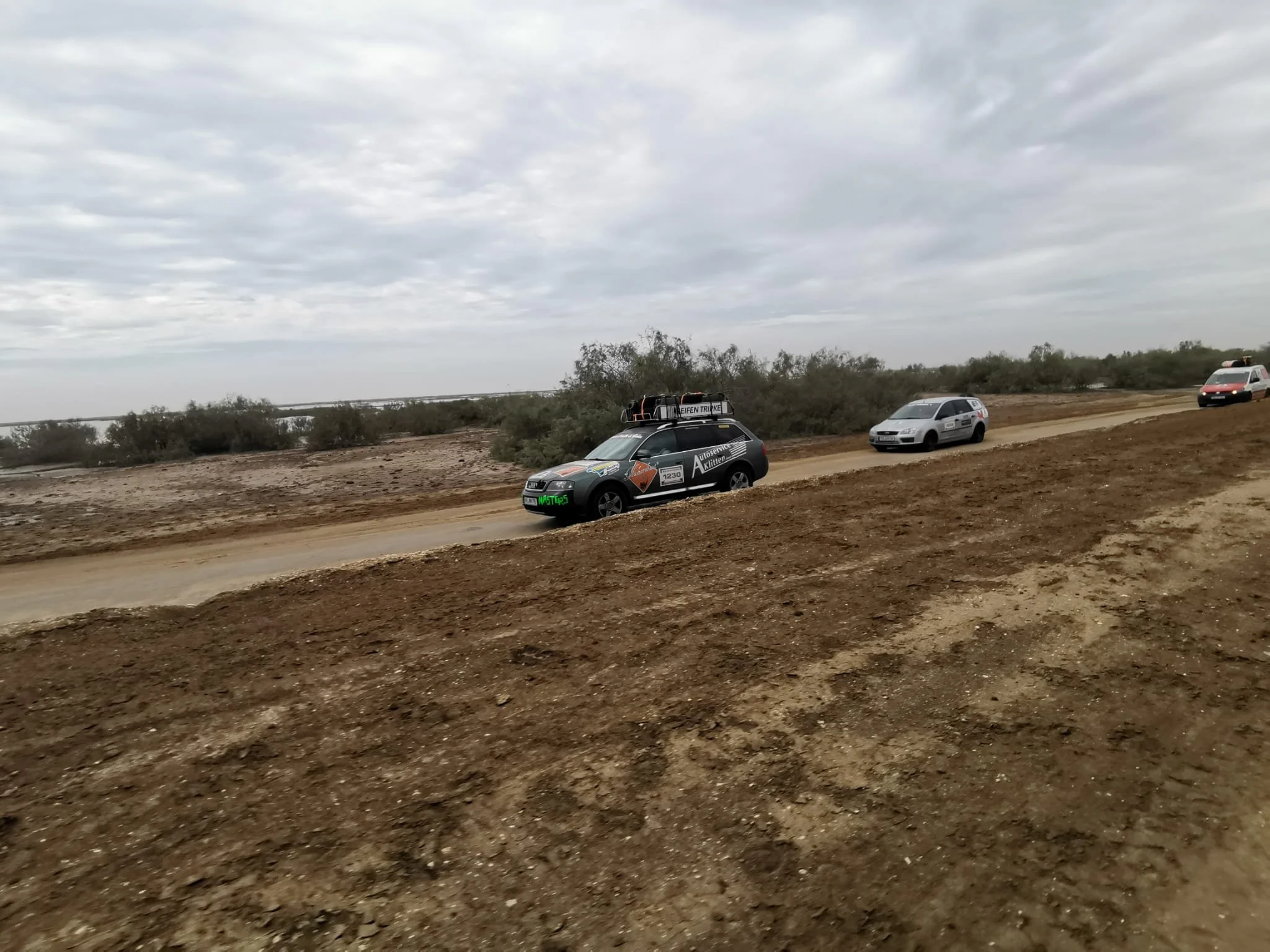 Auf dem Damm lockerte sich langsam, aber stetig, das Unterbodenblech am Ford Galaxy des Teams „Harian’s-Galaxy“, bis es schließlich kurz vor der Grenze abmontiert werden musste.