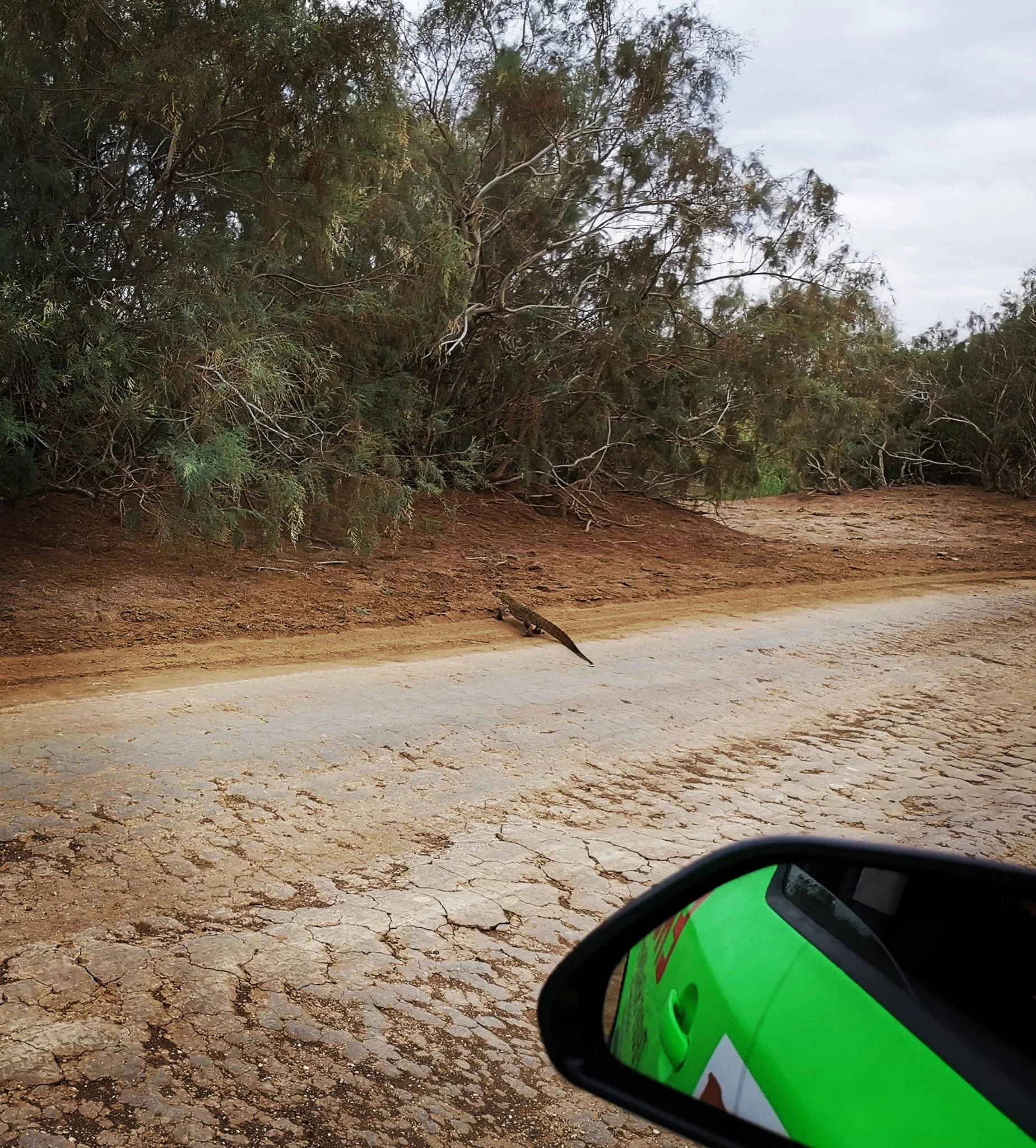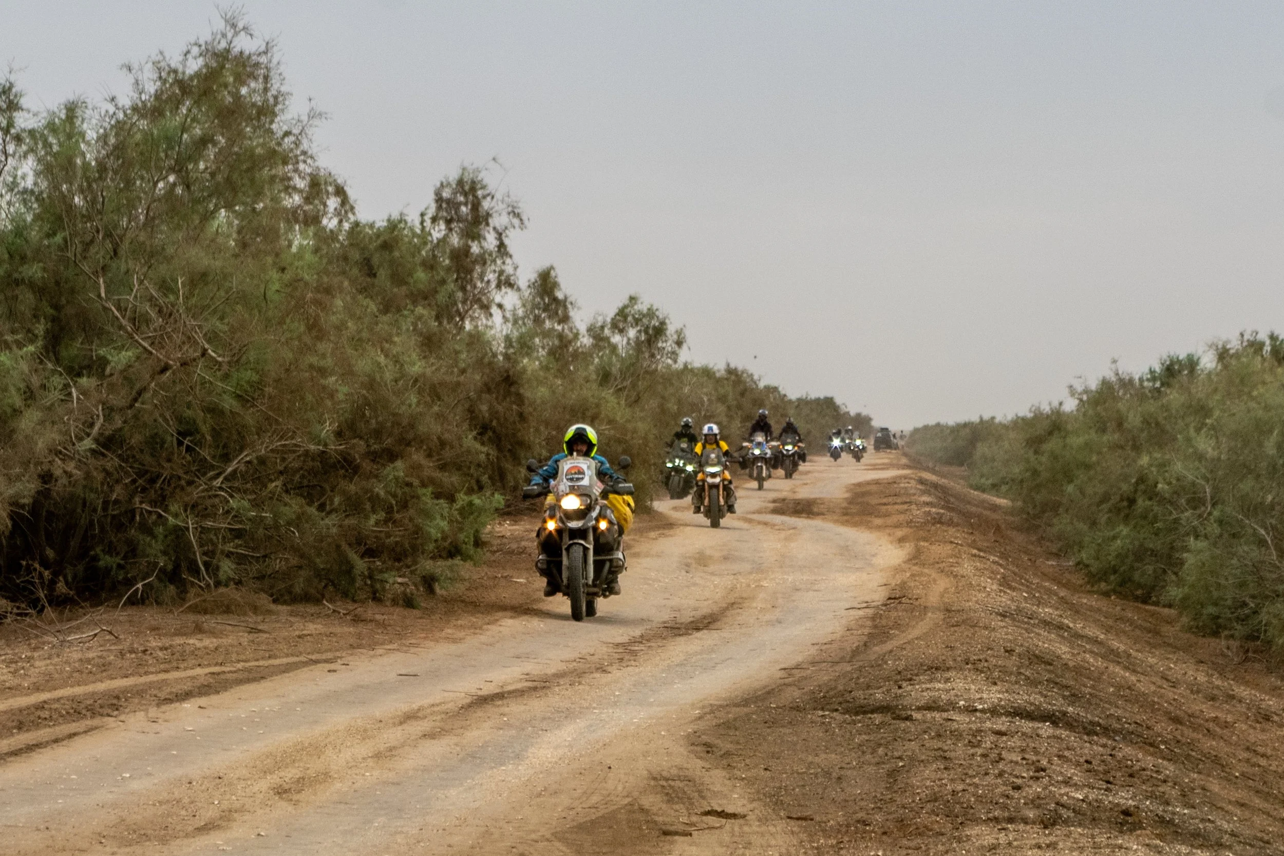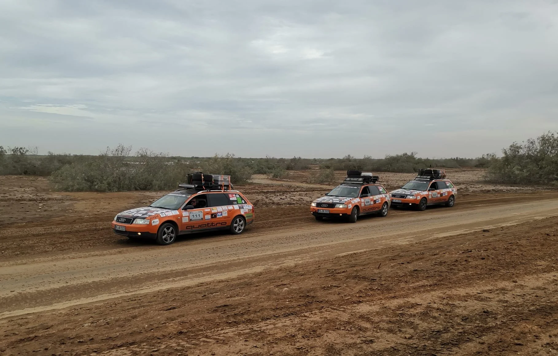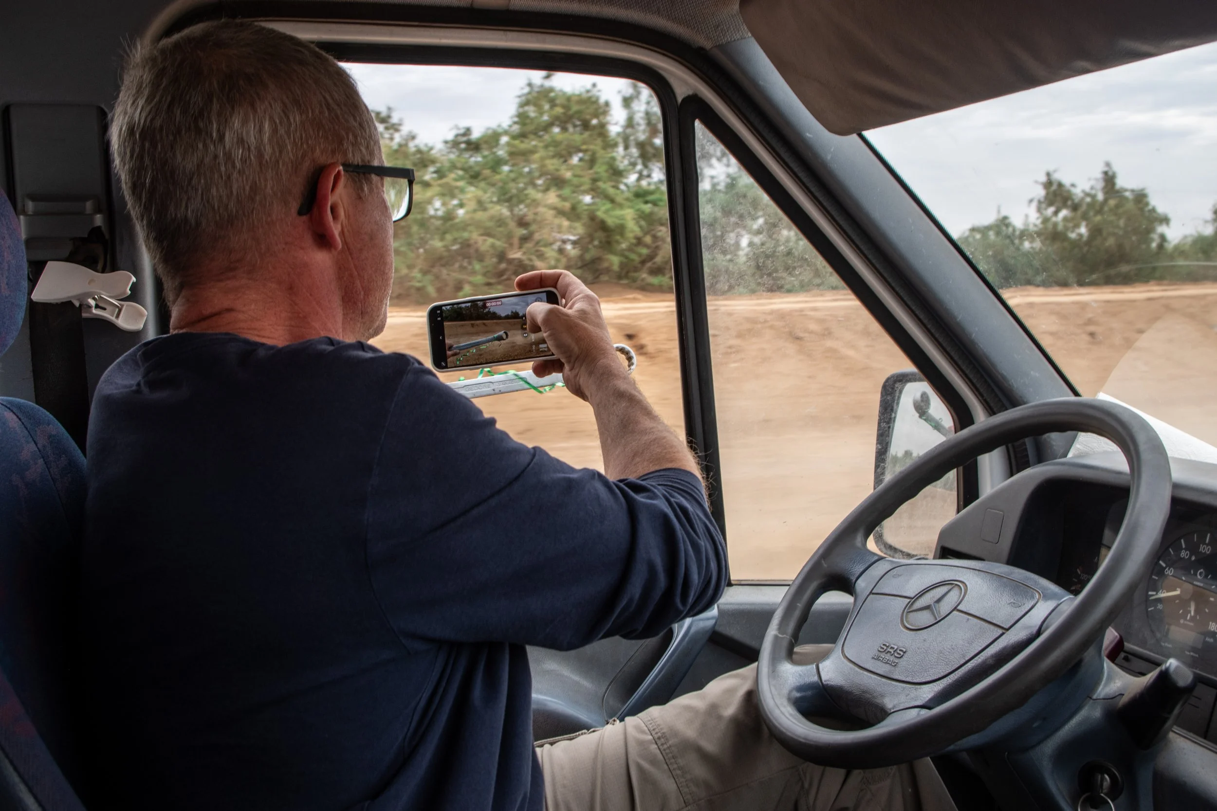 Unser Weg führte durch mehrere kleine Ortschaften in Richtung Grenze, vorbei an Kindern, die „Gadou“ (Geschenk) riefen und, wenn sie nichts bekamen, auch gern mal mit kleinen Steinen warfen – zwei Fahrzeugscheiben fanden das leider nicht so toll. Allmählich änderte sich auch die Landschaft, denn wir tauchten in die Sahelzone ein. Weiter ging es über einen Damm durch den Diawling-Nationalpark. Mit etwas Glück konnte man hier Warzenschweine, Warane und zahlreiche Vögel entdecken – oder man sah nur den Staub des vorausfahrenden Rallyefahrzeugs.