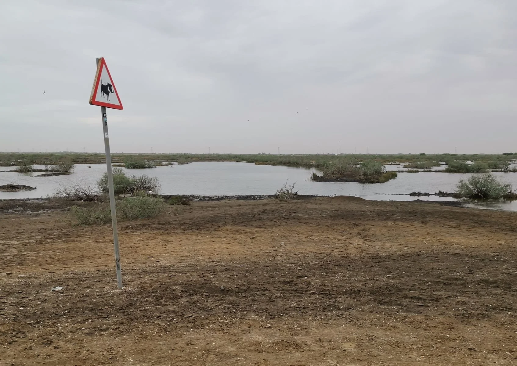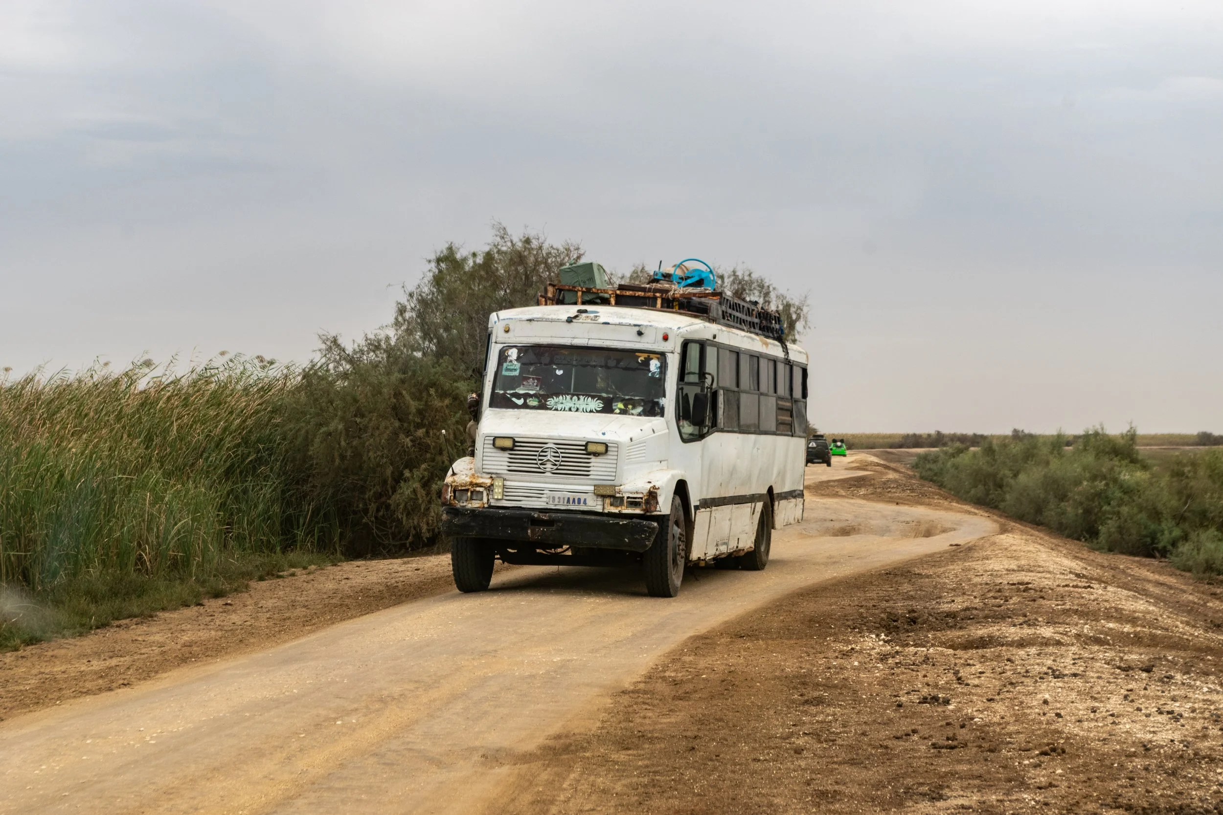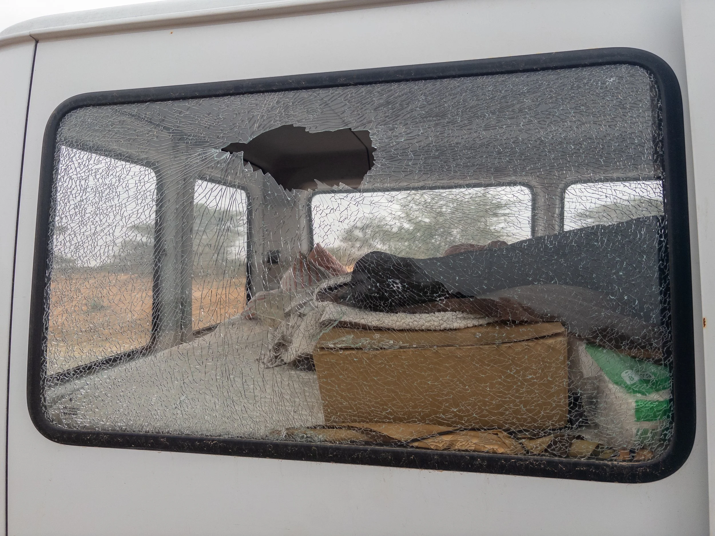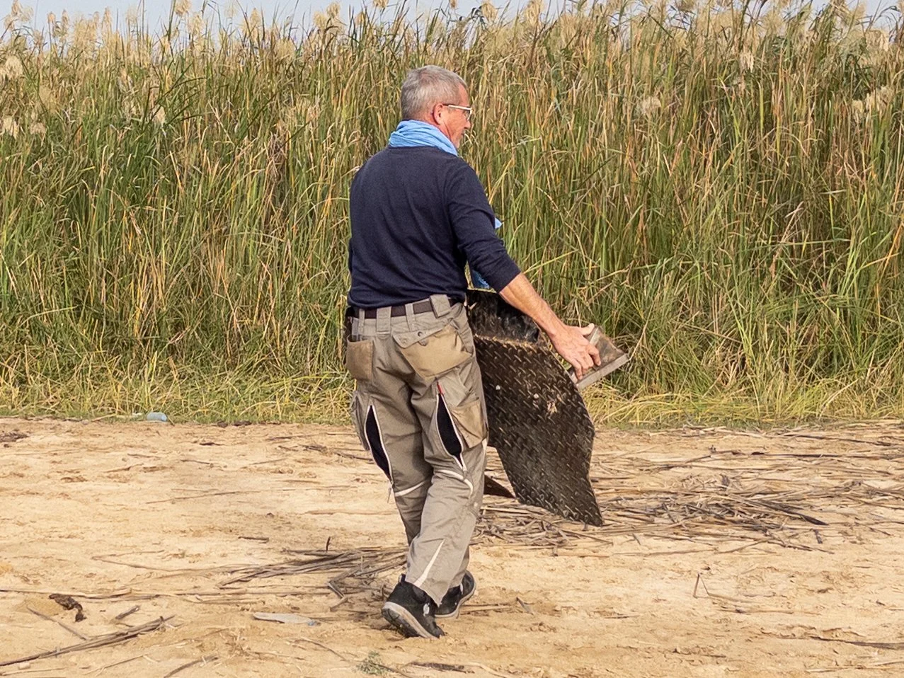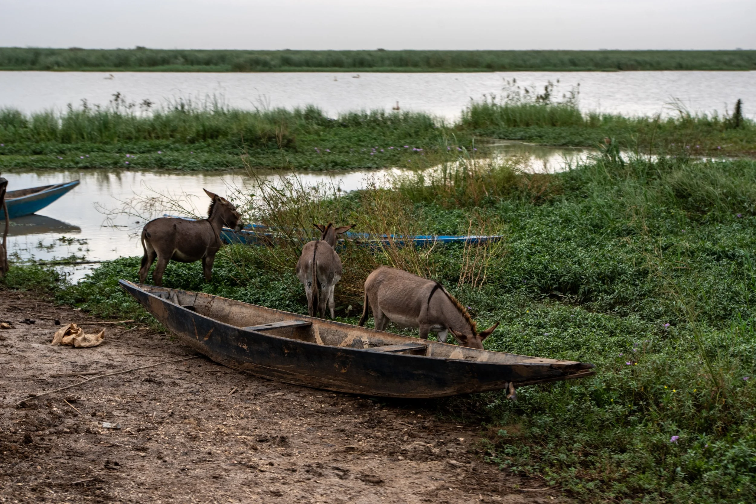 Unser Weg führte durch mehrere kleine Ortschaften in Richtung Grenze, vorbei an Kindern, die „Gadou“ (Geschenk) riefen und, wenn sie nichts bekamen, auch gern mal mit kleinen Steinen warfen – zwei Fahrzeugscheiben fanden das leider nicht so toll. Allmählich änderte sich auch die Landschaft, denn wir tauchten in die Sahelzone ein. Weiter ging es über einen Damm durch den Diawling-Nationalpark. Mit etwas Glück konnte man hier Warzenschweine, Warane und zahlreiche Vögel entdecken – oder man sah nur den Staub des vorausfahrenden Rallyefahrzeugs.