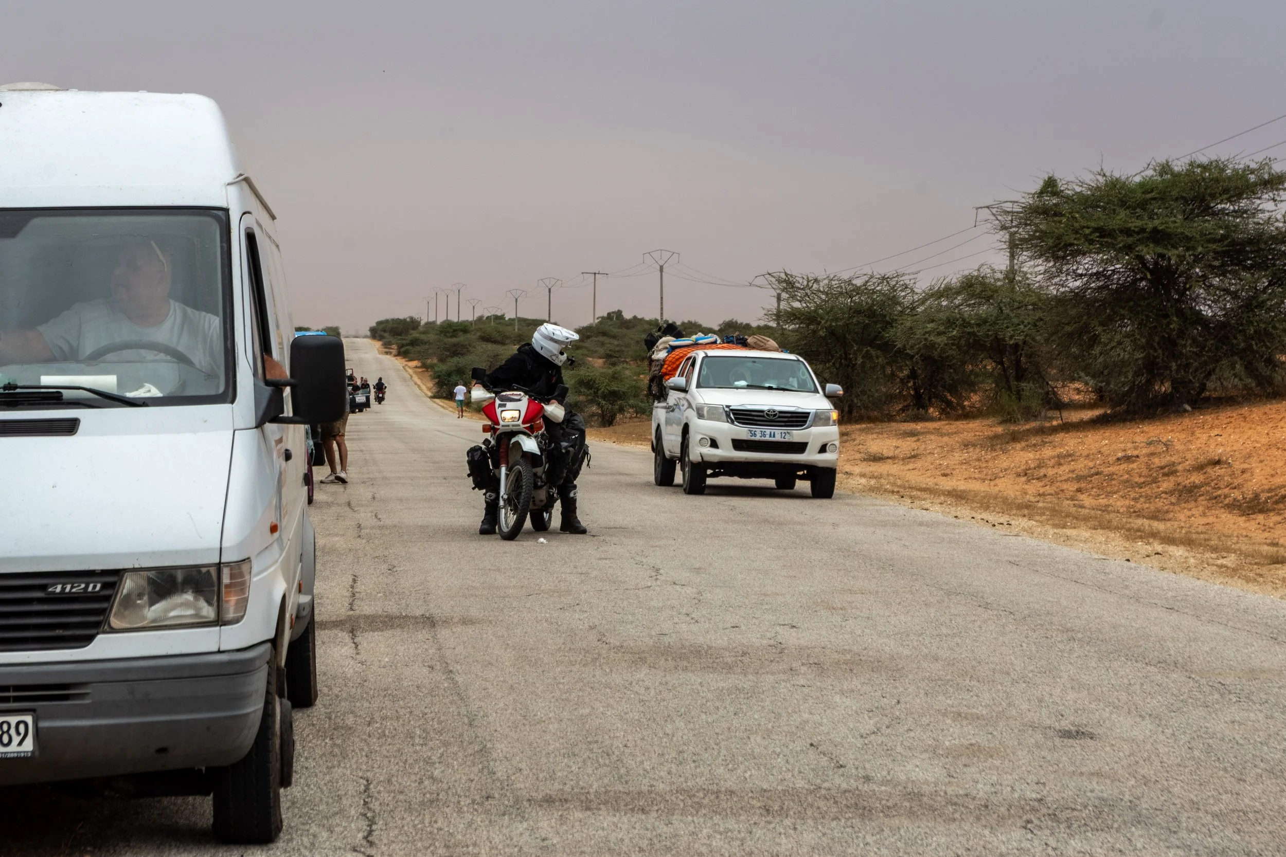 Ohne große Pannen absolvierten wir heute die vorletzte Etappe. Beim Herausfahren aus Nouakchott zeigte sich die Stadt allerdings nicht gerade von ihrer schönsten Seite: Industriebetriebe, viel Müll, noch mehr Armut und zahlreiche alte Fahrzeuge. Man glaubt kaum, in welchem Zustand sich ein Fahrzeug noch aus eigener Kraft fortbewegen kann.