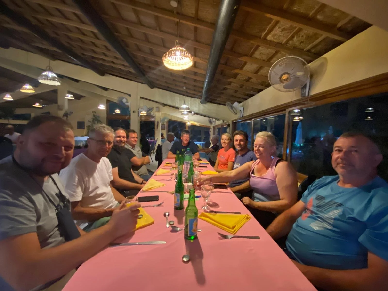 Die Aus- und Einreise dauerte leider bis zum Einbruch der Dunkelheit. So rollten wir durch das abendliche Gewusel von St. Louis in teils sehr dunklen Gassen, vorbei an Ziegen, anderen Tieren, Pferdekutschen, Eselkarren, spielenden Kindern, in Hauseingängen sitzenden oder geschäftig umhereilenden Frauen und Männern und schließlich an im Wasser liegenden Fischerbooten. Im Hotel wurden erst die Rezeption und dann die Bar gestürmt.