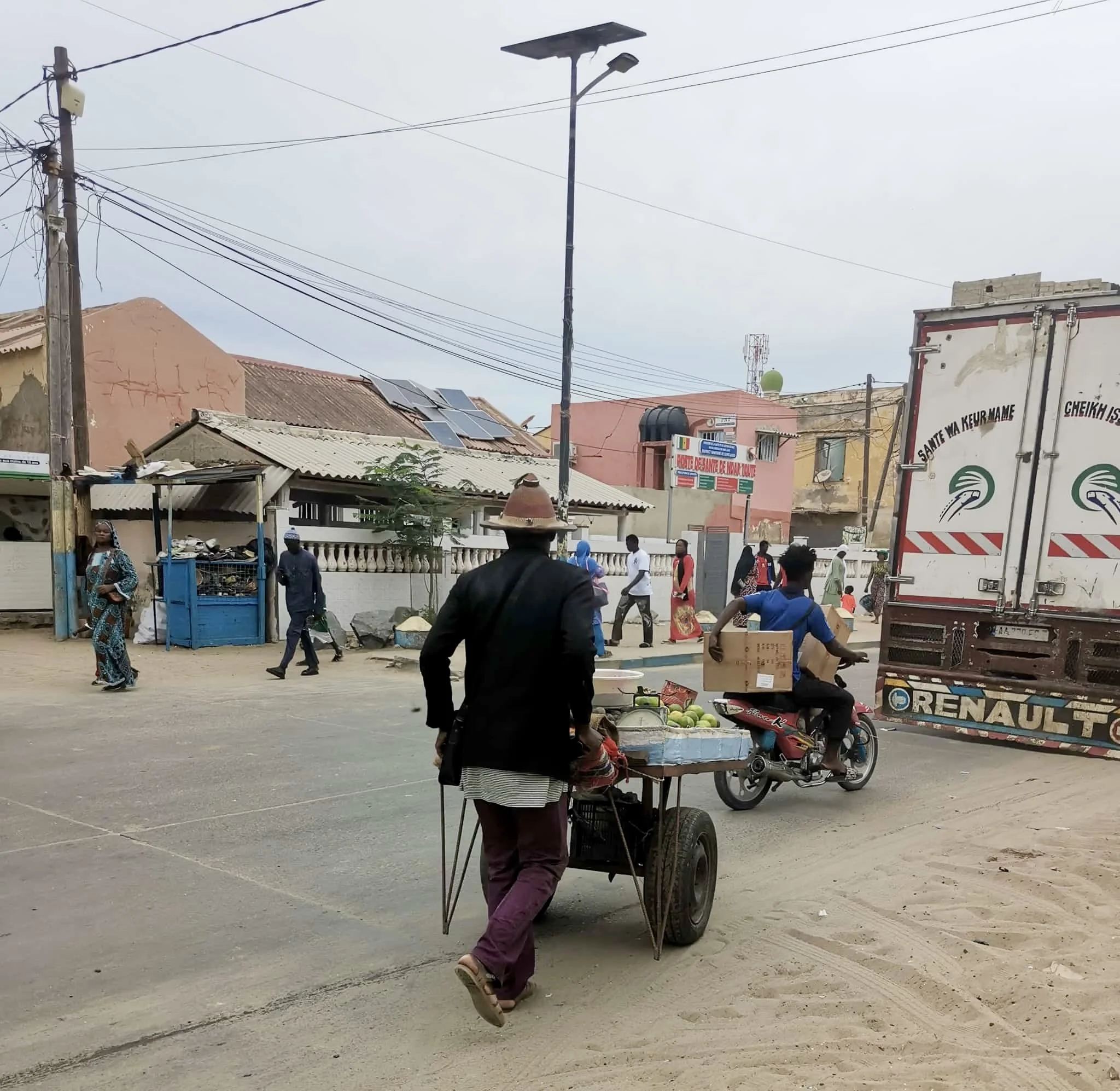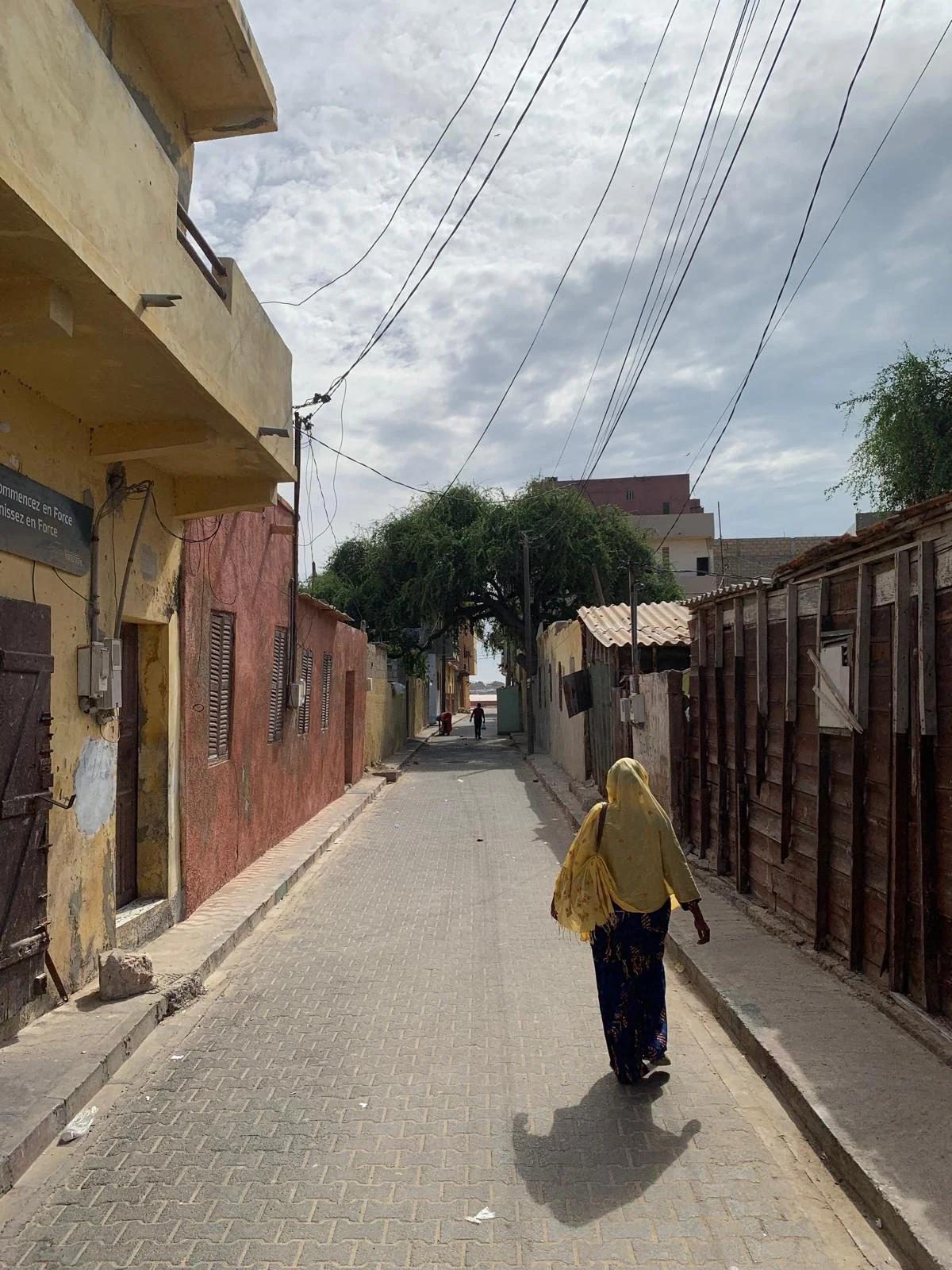 Die Architektur erzählt Geschichten: bröckelnde Fassaden neben liebevoll restaurierten Gebäuden, bunt bemalte französische Kolonialbauten mit ihren typisch senegalesischen Balkonen, kleine Werkstätten und Cafés, aus denen afrikanische Rhythmen auf die Straße dringen. In den Gassen der Insel (Île de Saint-Louis) herrscht ein lebhaftes Durcheinander aus Stimmen, Musik und dem Duft von frisch gebratenem Fisch oder anderen Leckereien. Frauen in farbenprächtigen Boubous tragen Warenkörbe auf dem Kopf, während Schulklassen lachend an den Häusern vorbeiziehen.