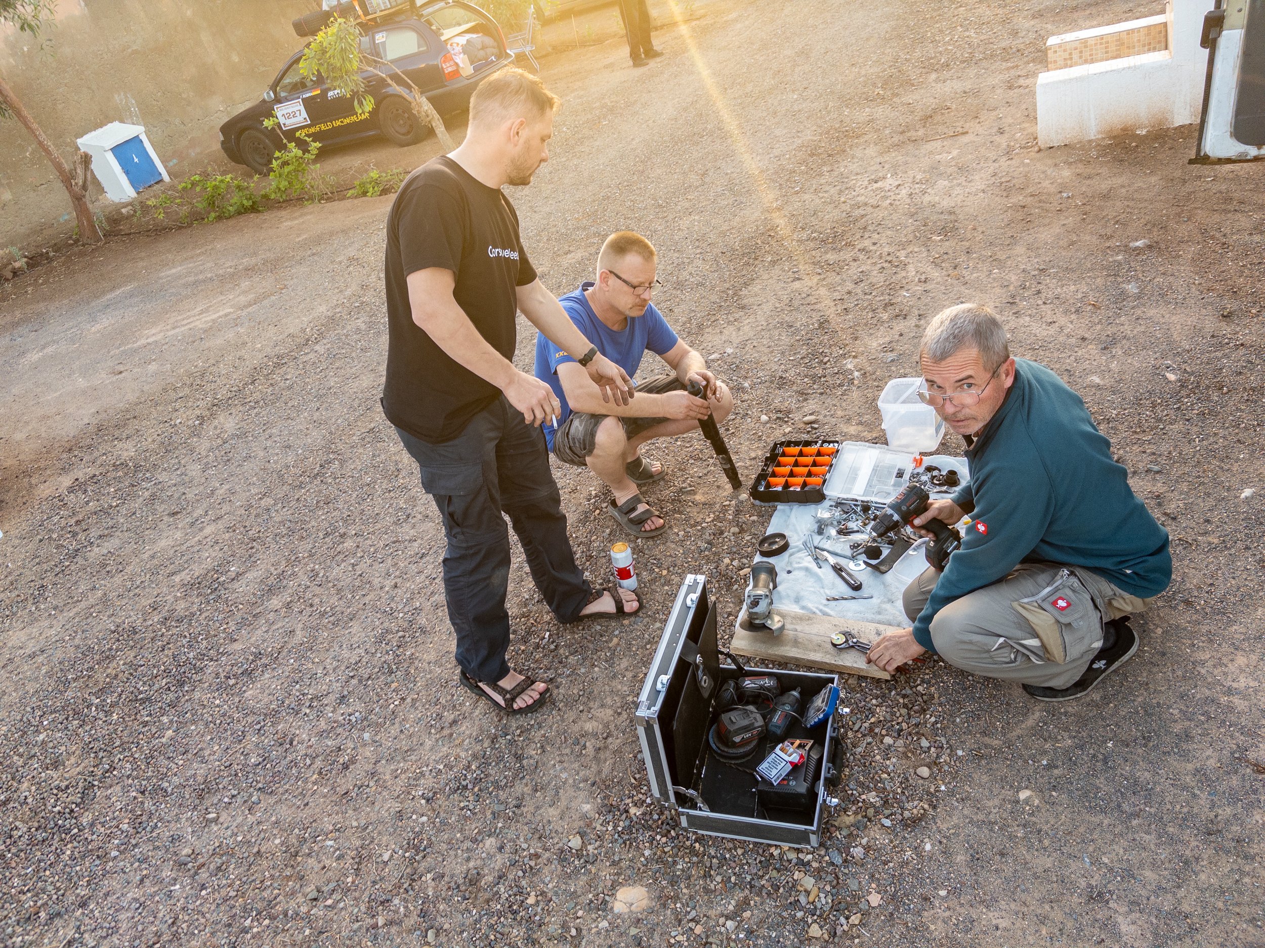 Der „Frosch“ (der VW T4 von Team „From Bautzen to Banjul“) hatte erneut mit Überhitzung zu kämpfen. Der vor ein paar Tagen geflickte Kühlerschlauch war wieder undicht geworden, und vermutlich hatte auch der Kühler ein Leck. Eine Werkstatt in Agadir half und ein Beutel Schwarztee machte die Sache perfekt.