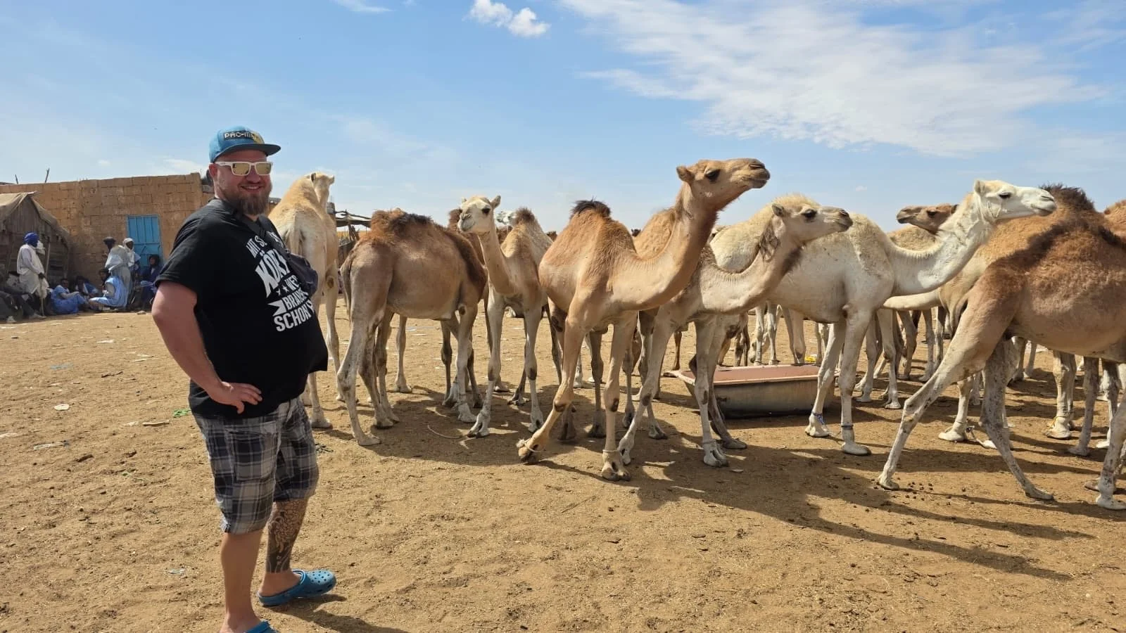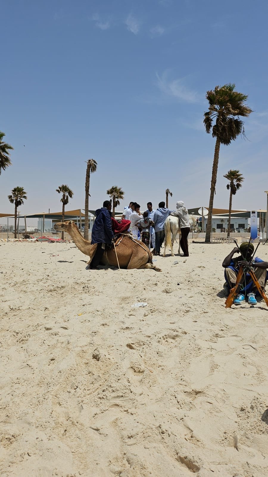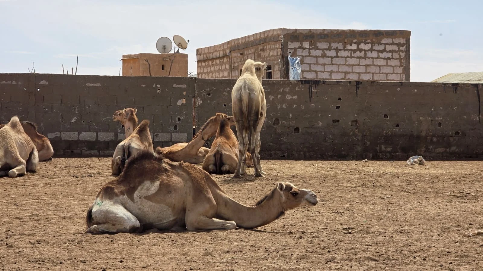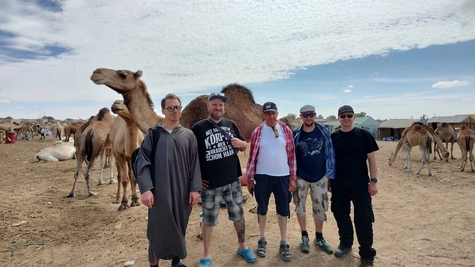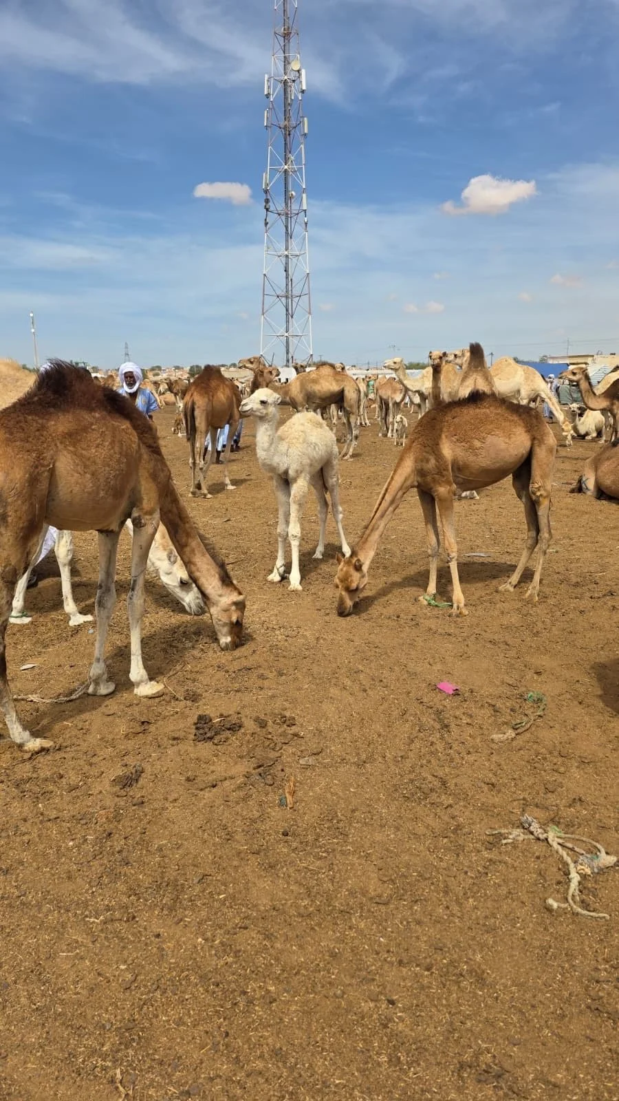 Hier drängen sich Händler, Käufer und neugierige Besucher zwischen den Tieren. Die Kamele kauern ruhig im Sand, ihre langen Hälse bewegen sich träge, während sie das geschäftige Treiben beobachten und ihrerseits begutachtet werden. Doch nicht nur Kamele werden hier gehandelt, sondern auch andere Tiere. Und über allem liegt ein schwer zu beschreibender Geruch aus Staub und Tieren.