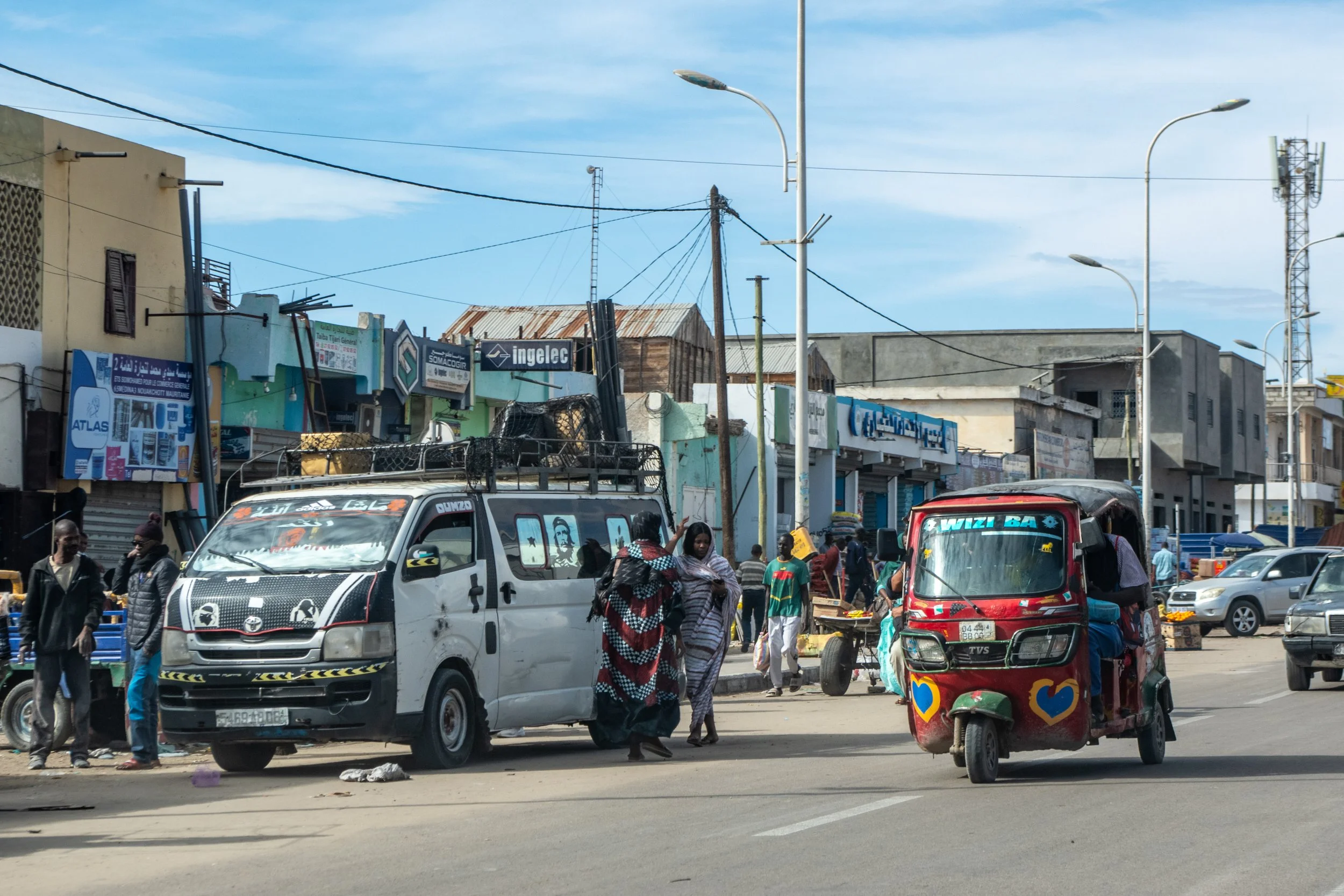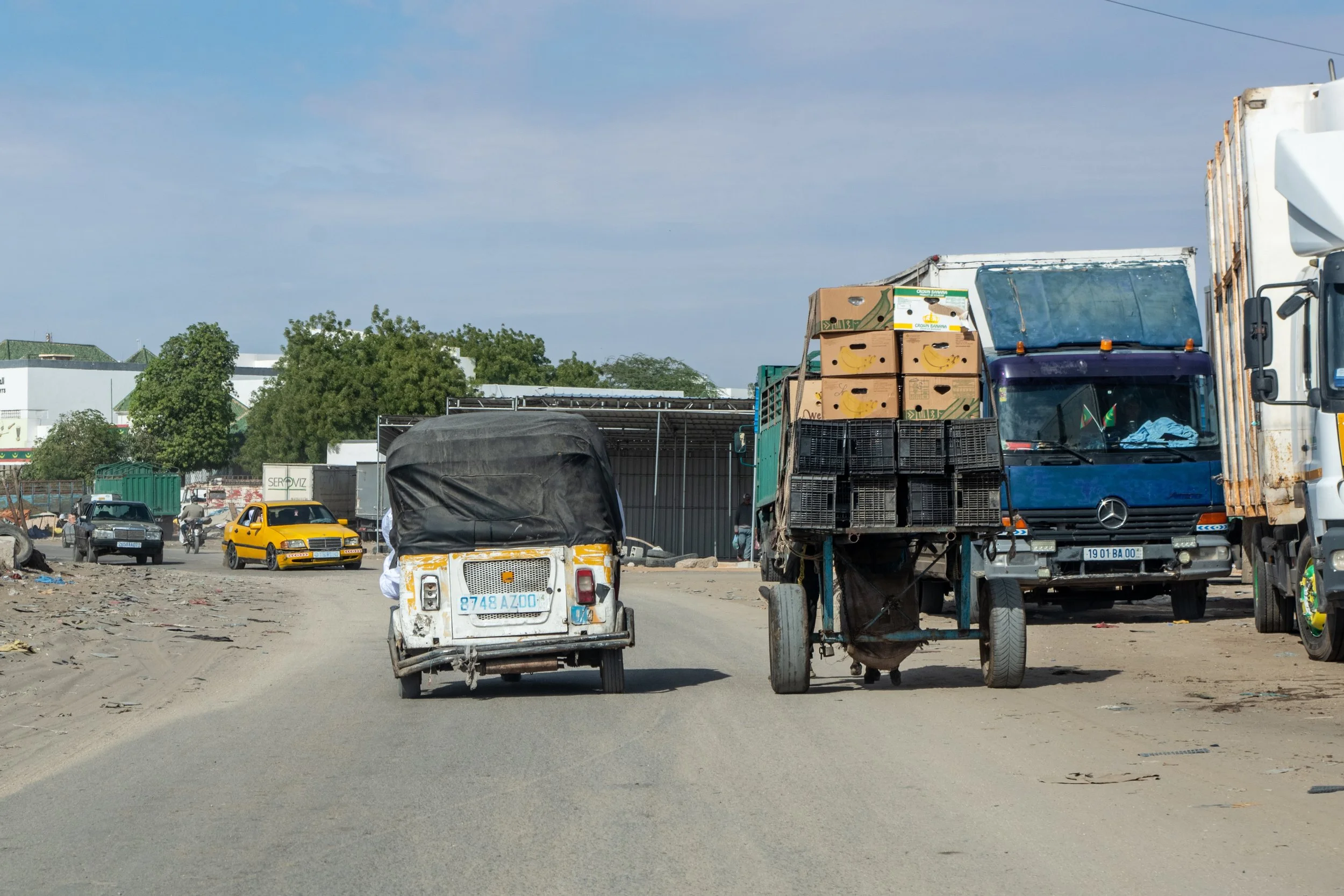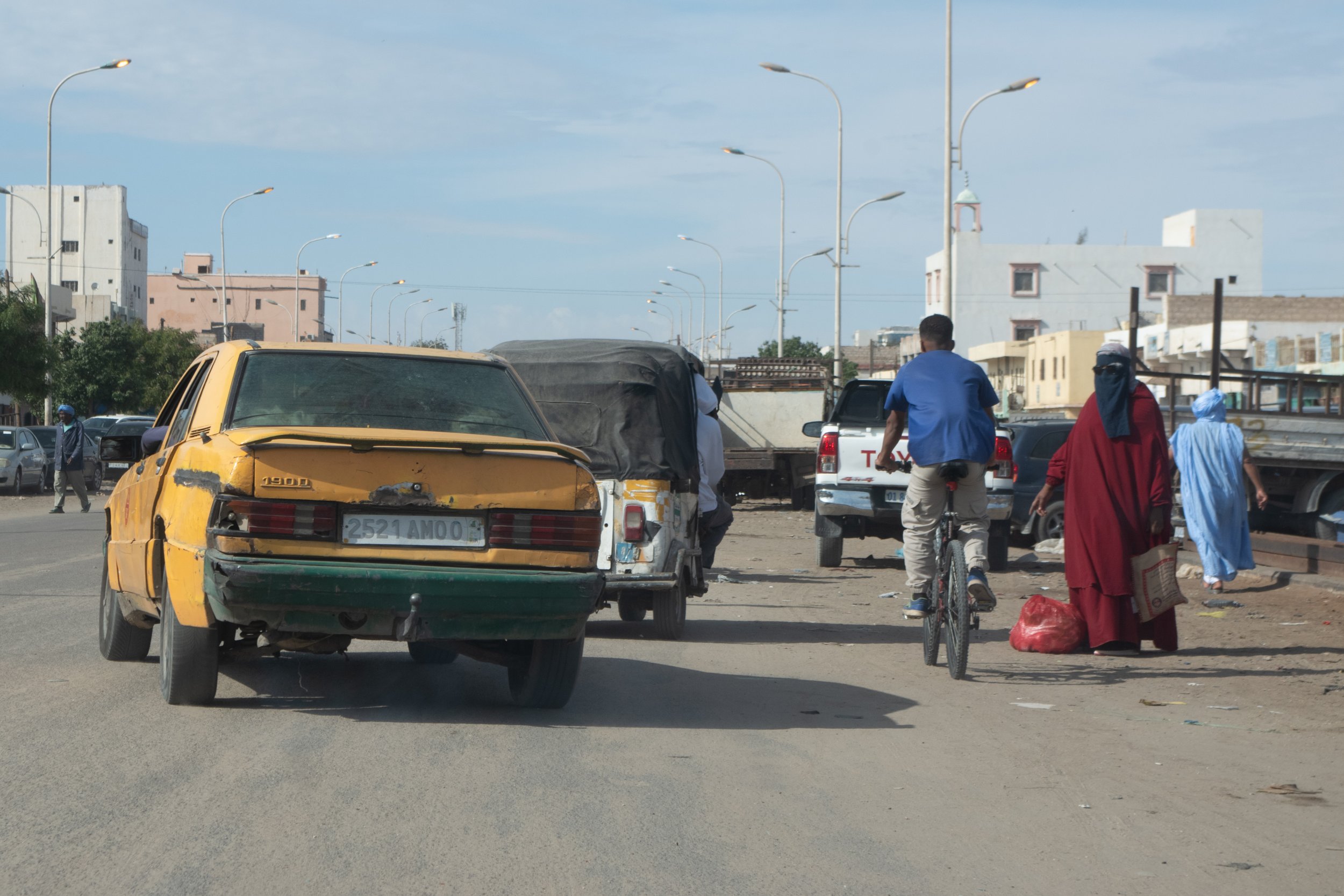 Nicht zuletzt hat Nouakchott auch für Freunde des Automobils viel zu bieten: Neben einem schicken neuen SUV steht ein schrottreifes Taxi. Dazwischen wuseln die Tuk-Tuks herum, und ein paar rostige alte Rundhauber bahnen sich ihren Weg.