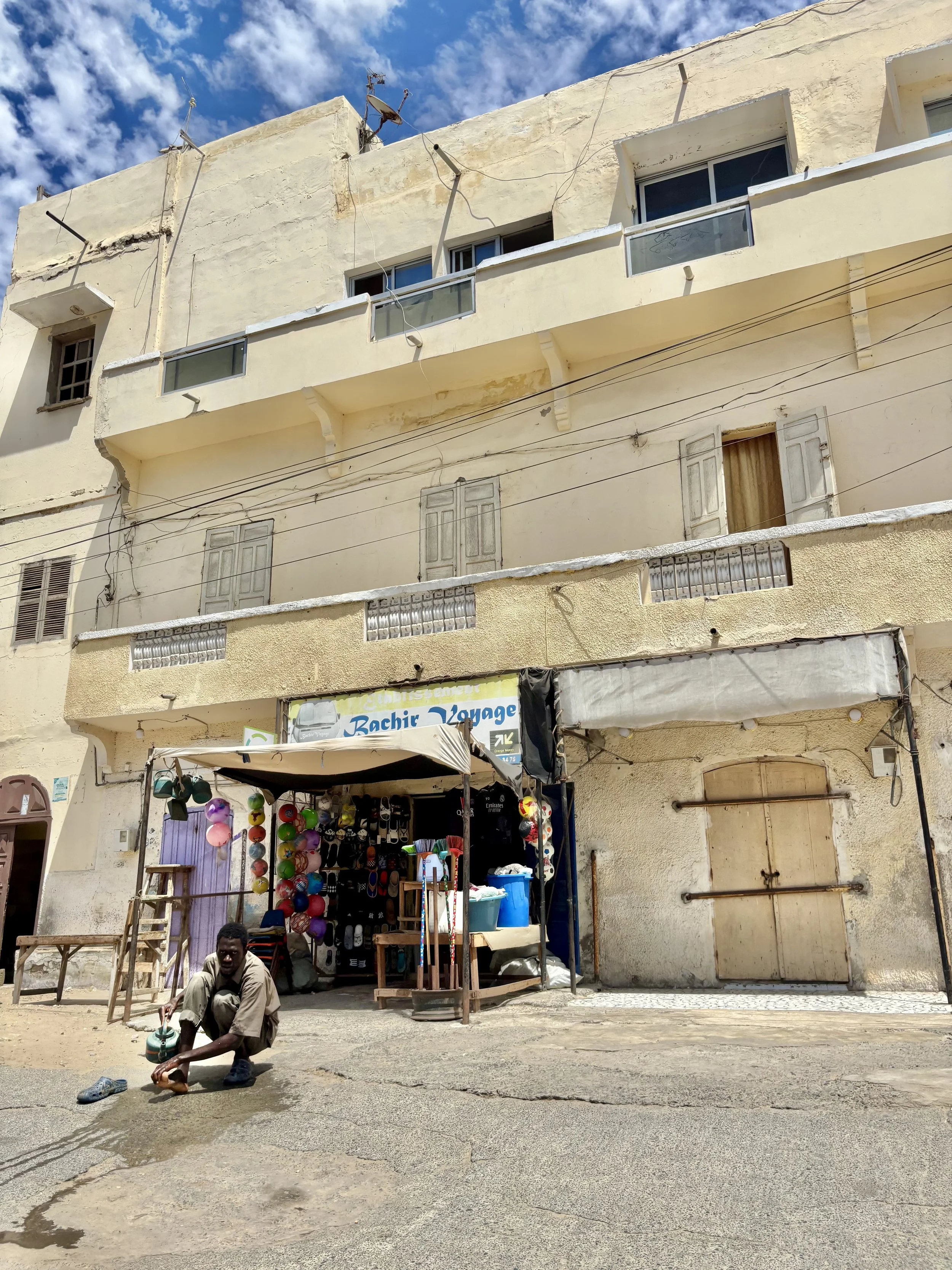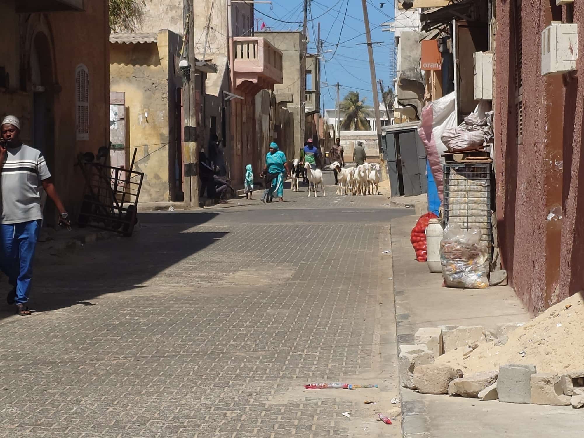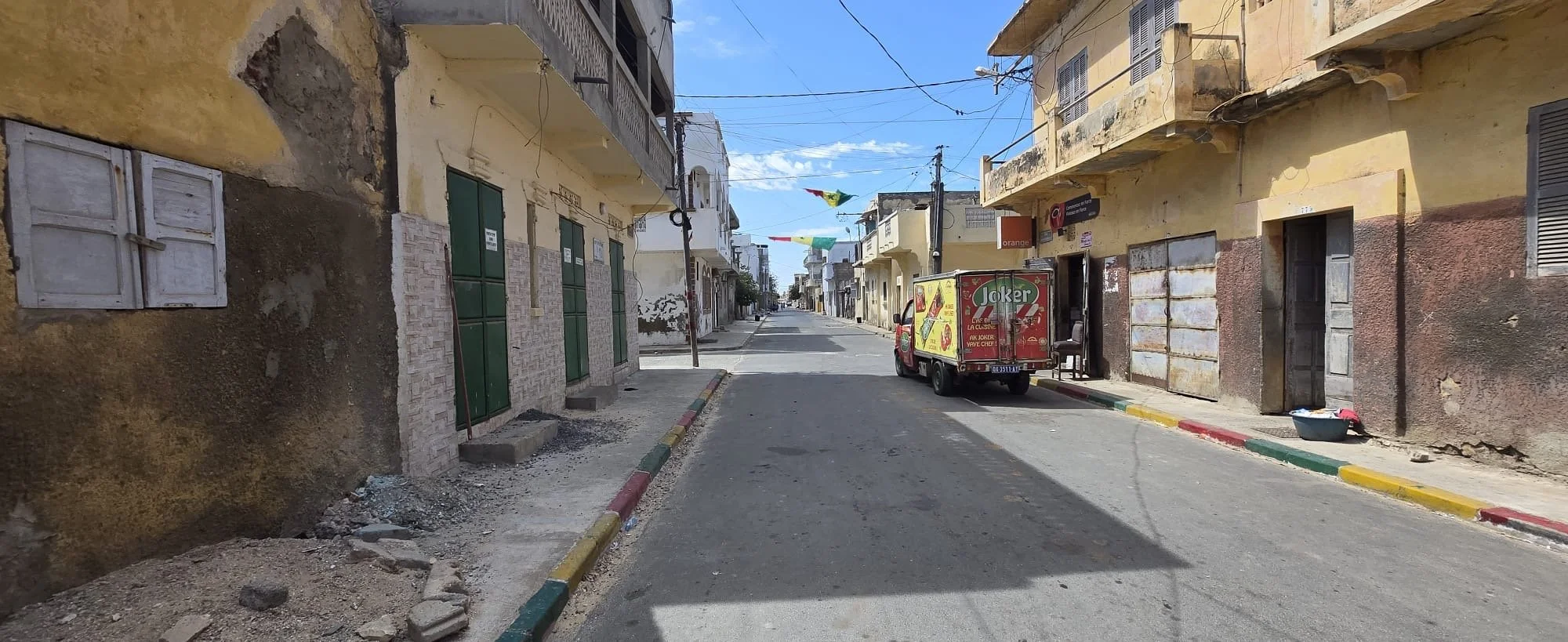 Bröckelnde Fassaden stehen neben liebevoll restaurierten Gebäuden, bunt bemalte Kolonialbauten neben kleinen Werkstätten und Cafés. Stimmen, Geräusche, Leben. Frauen in farbenprächtigen Boubous, Kinder in Schuluniformen, Männer meist eher westlich gekleidet. Ein buntes, bewegtes Stadtbild.