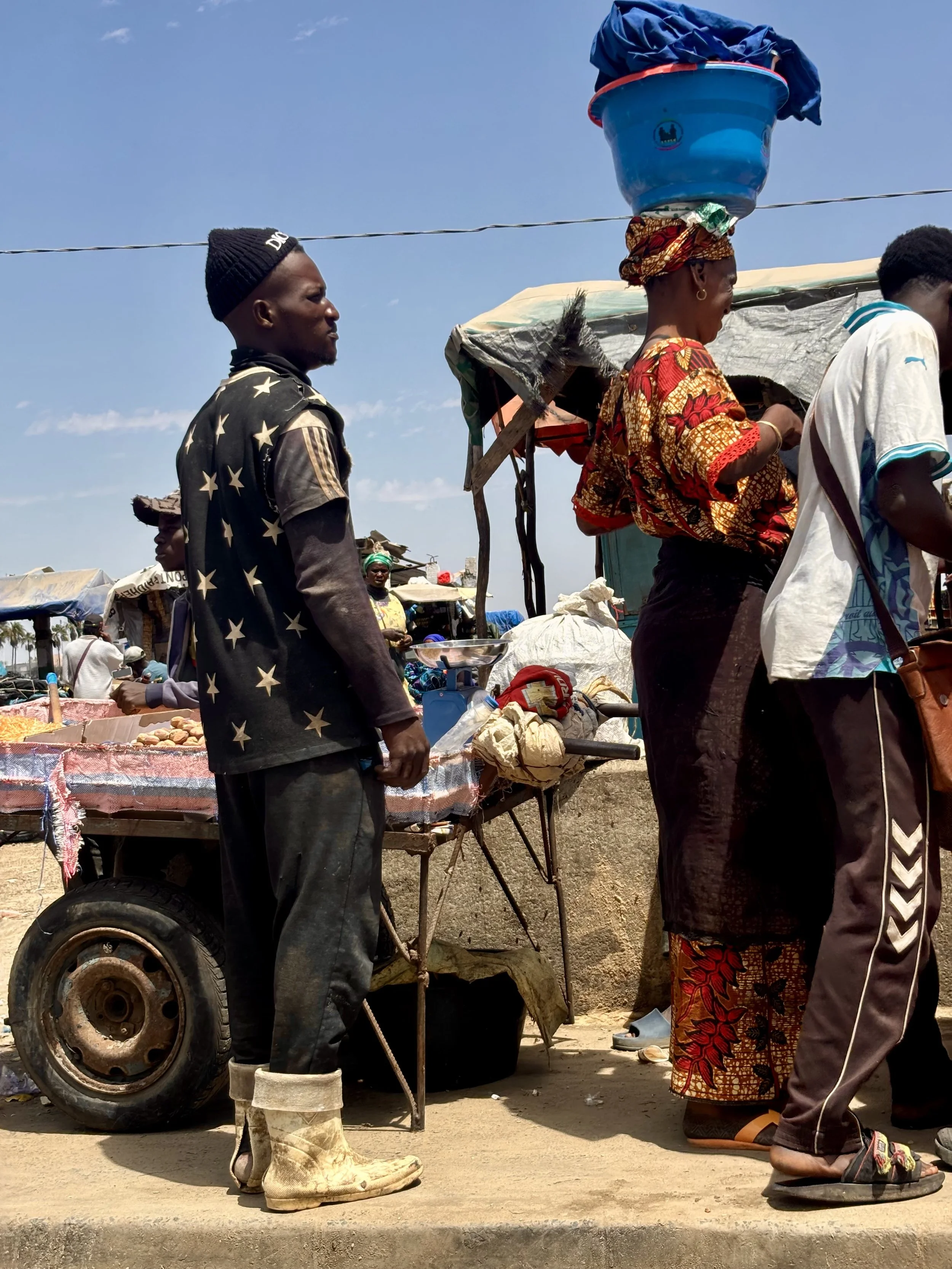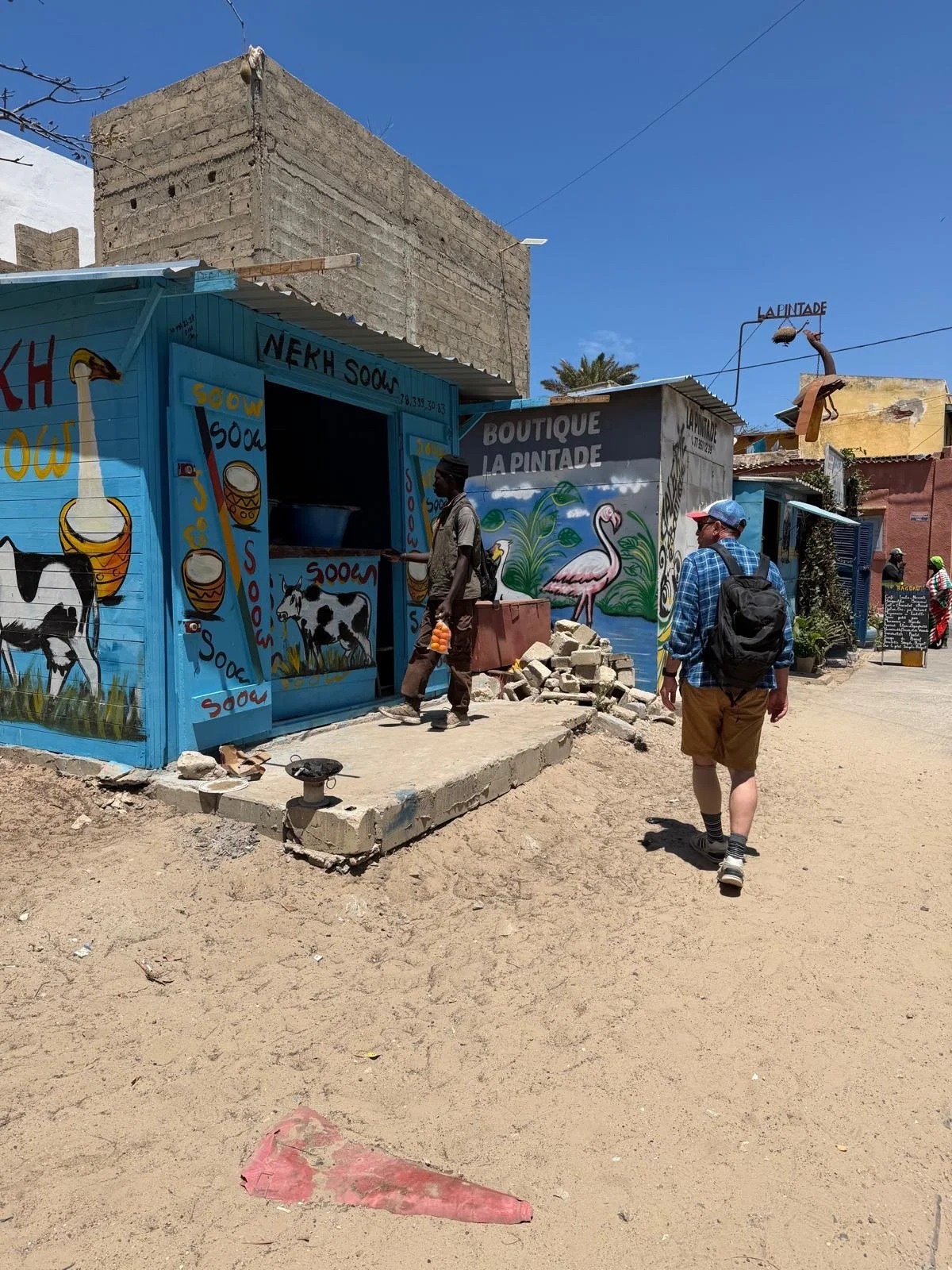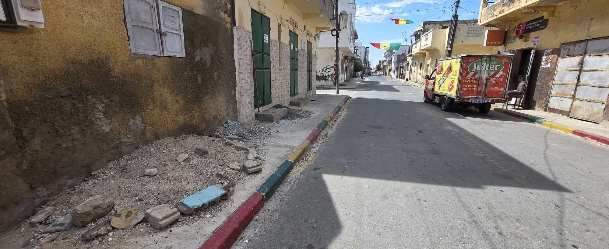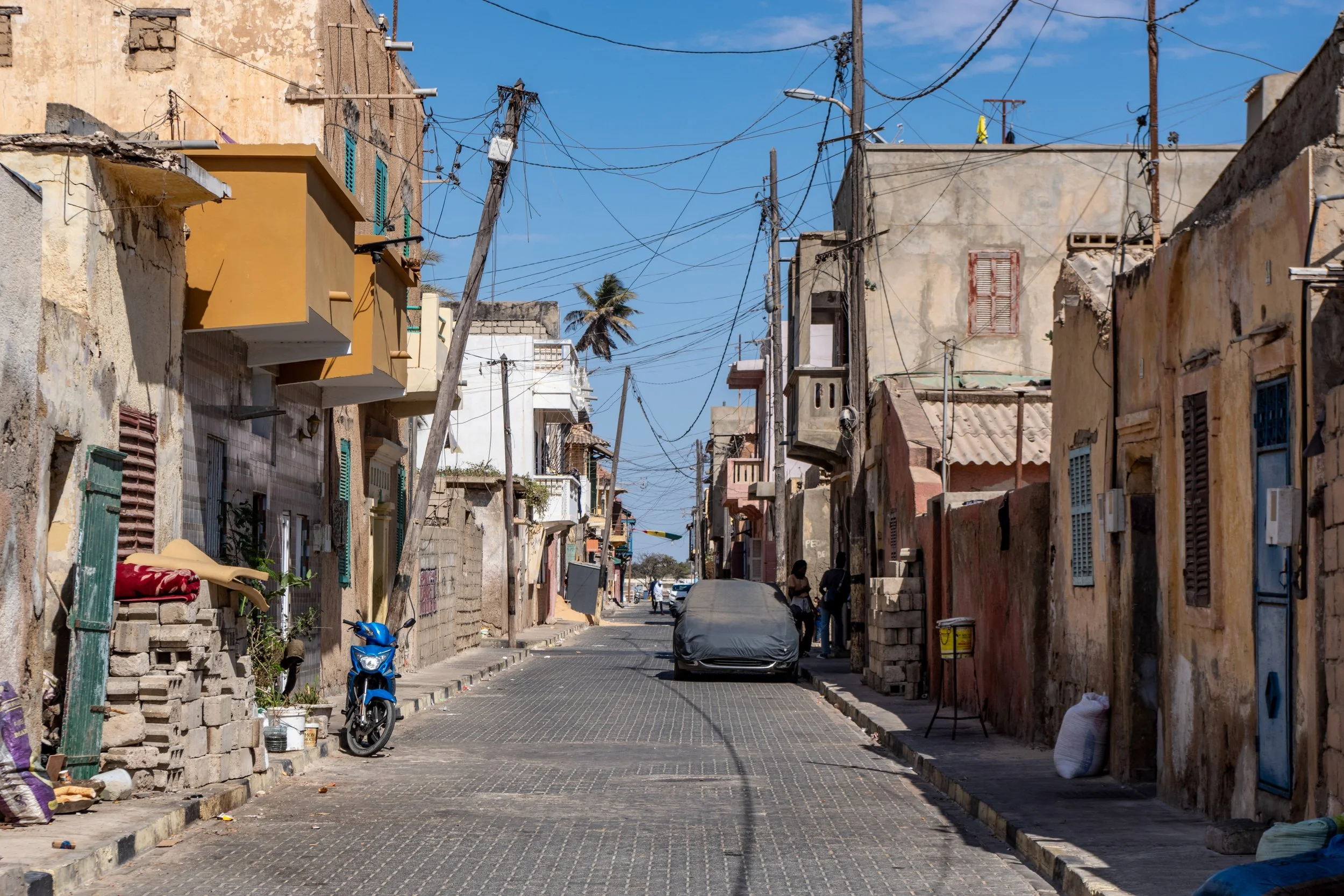 Bröckelnde Fassaden stehen neben liebevoll restaurierten Gebäuden, bunt bemalte Kolonialbauten neben kleinen Werkstätten und Cafés. Stimmen, Geräusche, Leben. Frauen in farbenprächtigen Boubous, Kinder in Schuluniformen, Männer meist eher westlich gekleidet. Ein buntes, bewegtes Stadtbild.