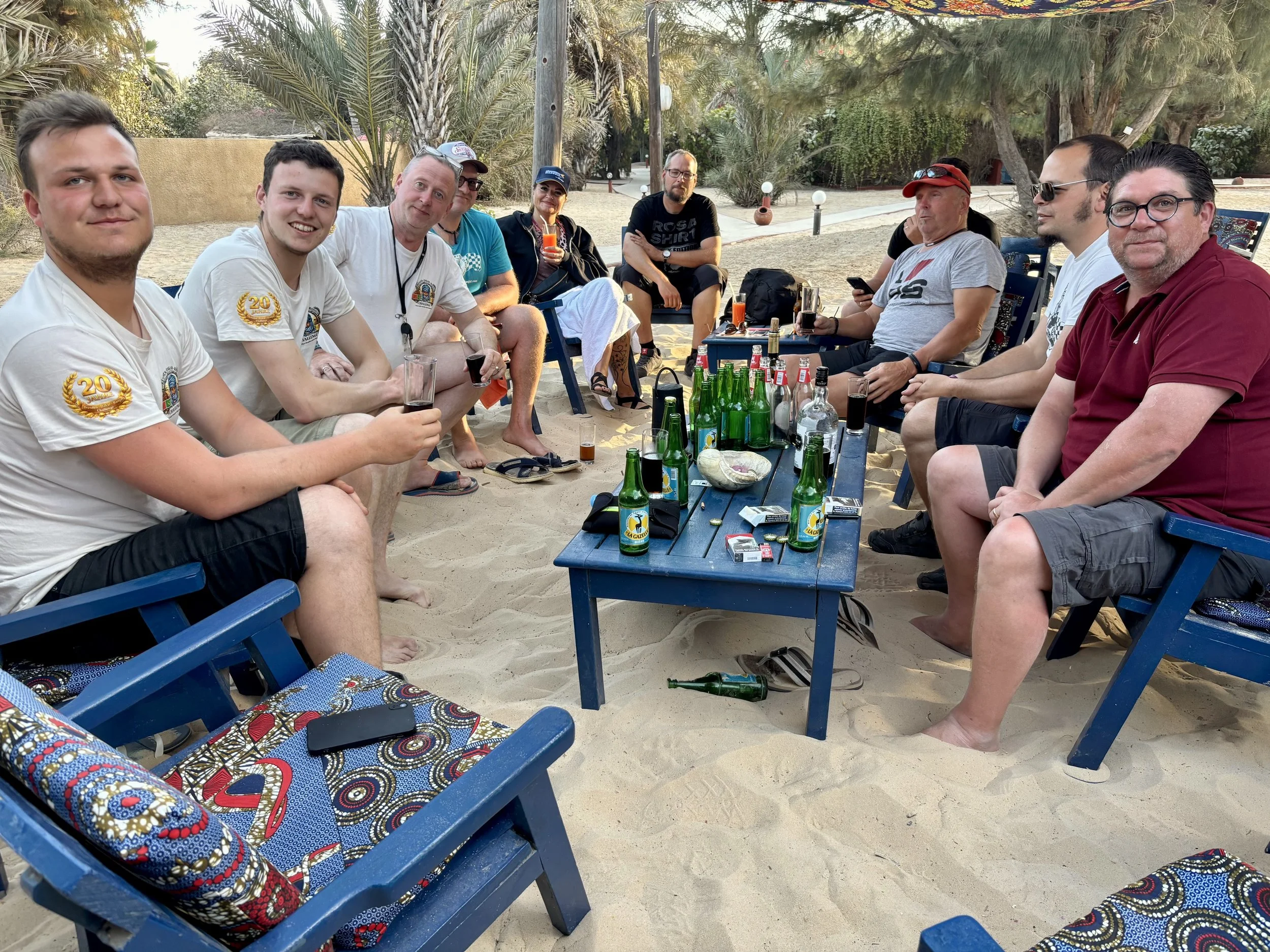 Am Abend gab es noch eine kleine Überraschungsparty für ein Geburtstagskind (Team „Wüstenschirme“). Aufgrund der morgigen frühen Abreise kehrte noch vor Mitternacht Ruhe in der Hotelanlage ein.