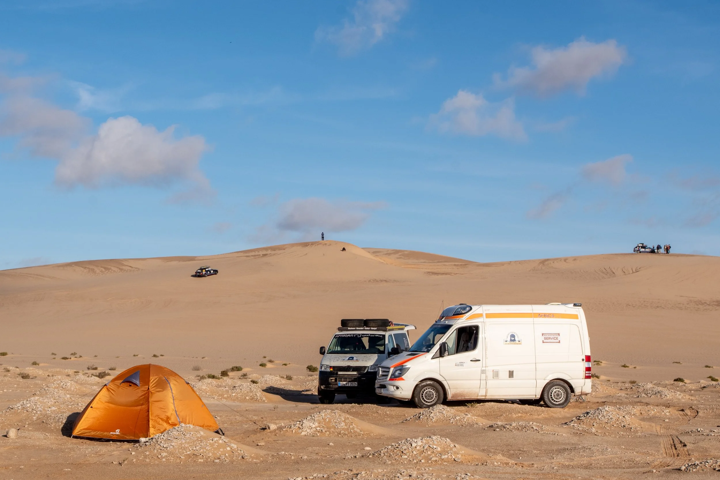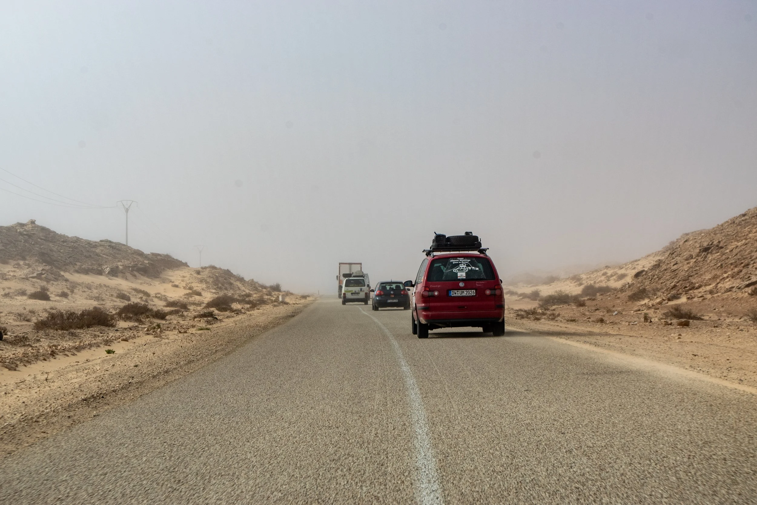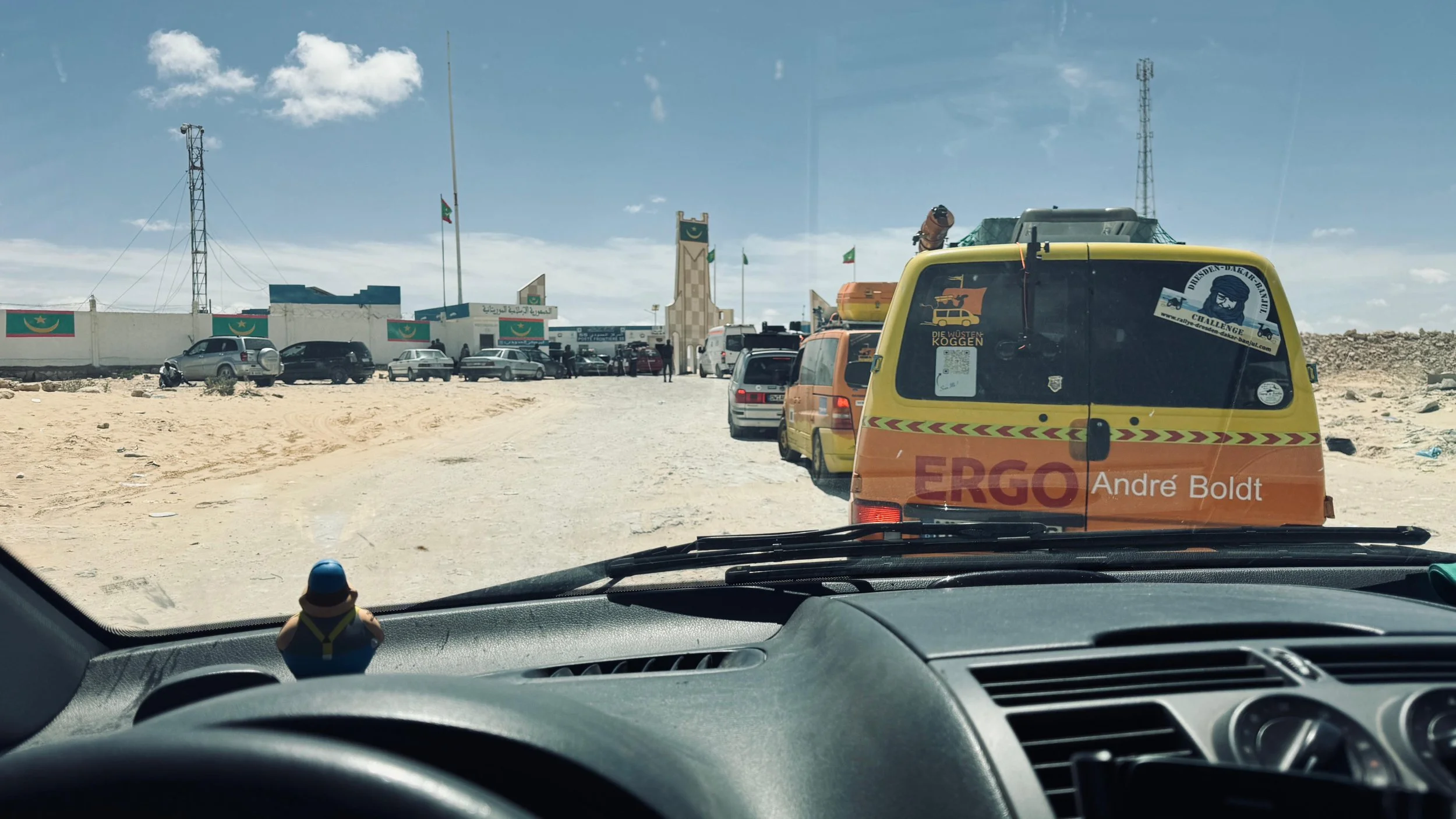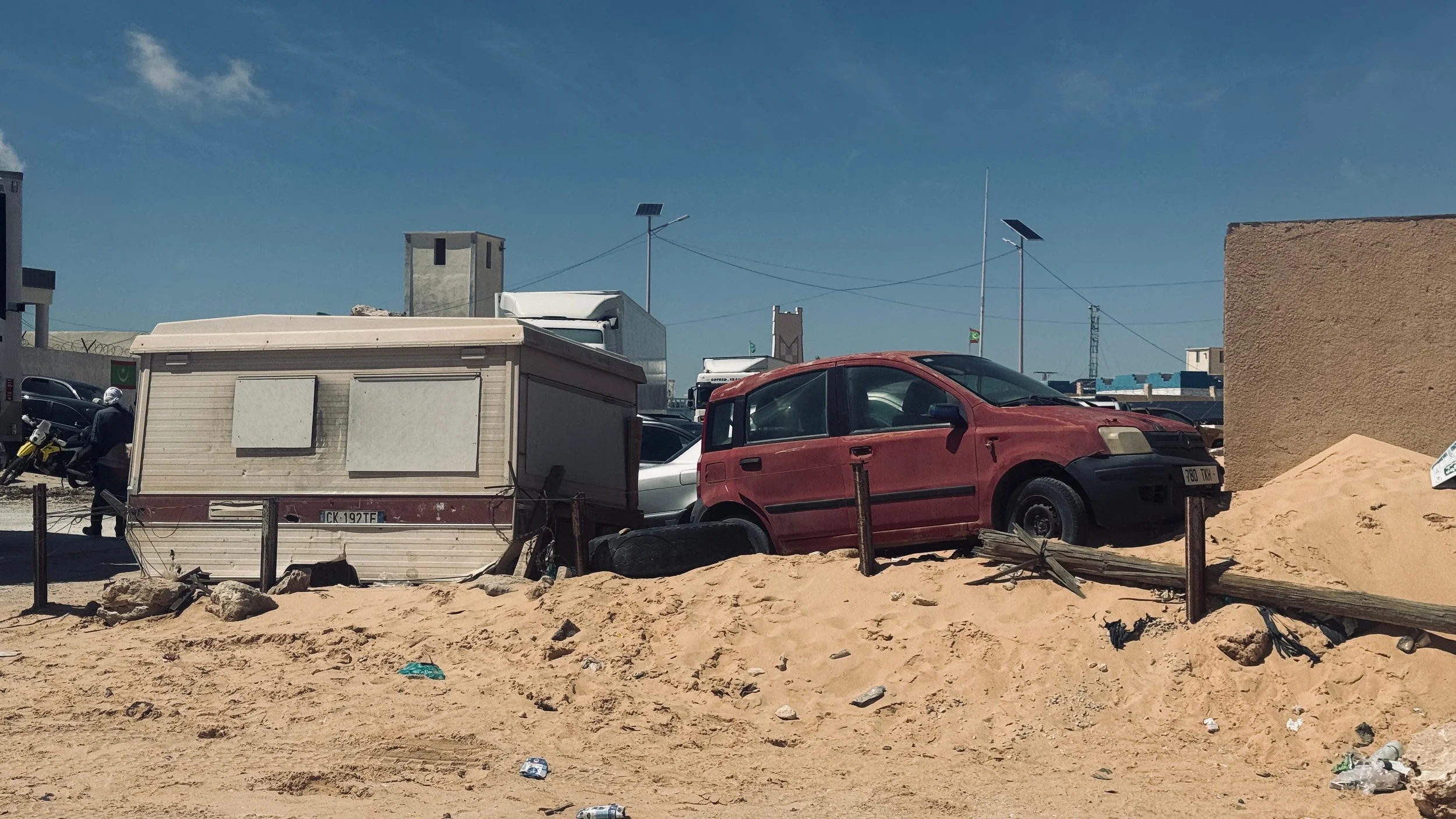 Teils auf Asphalt, teils auf holpriger Piste legten wir die vier Kilometer bis zur mauretanischen Grenze zurück. Die mauretanische Einreise dauerte zwar etwas länger, war mit etwa fünf Stunden aber dennoch fast rekordverdächtig schnell.
