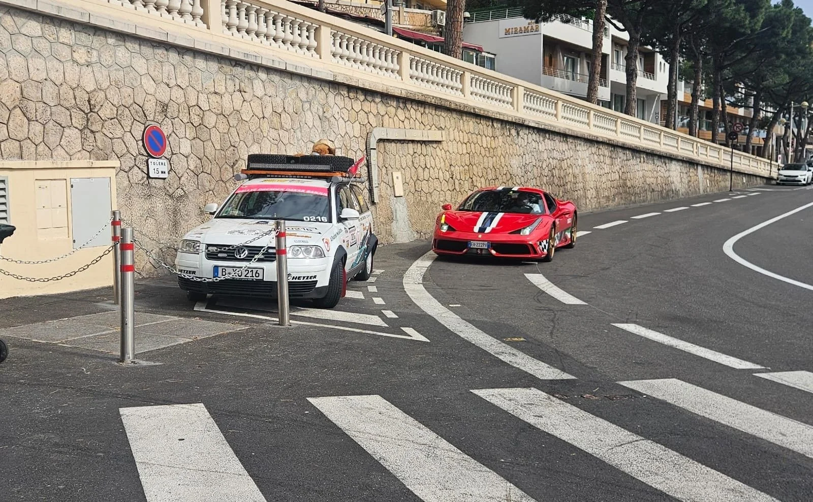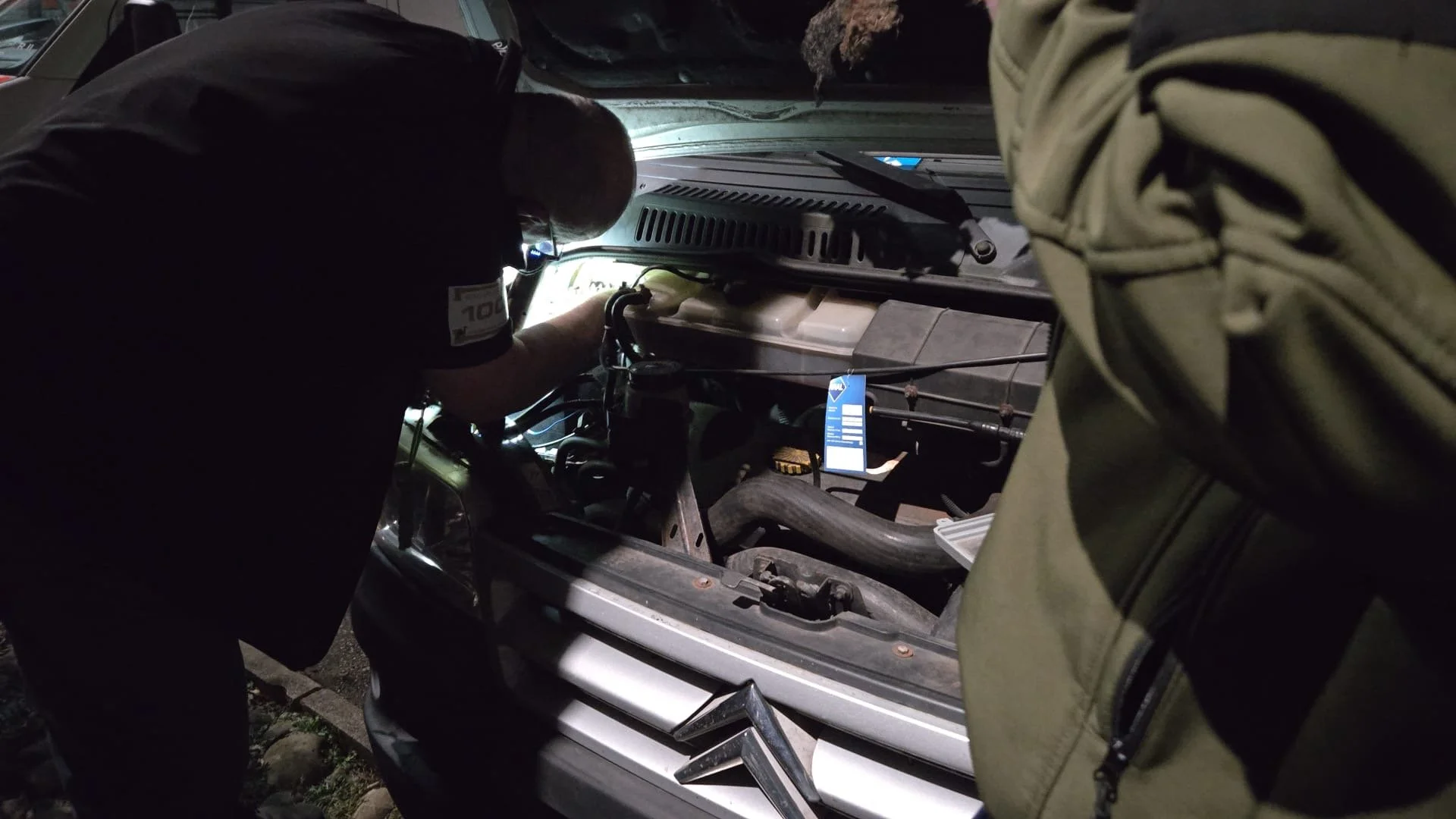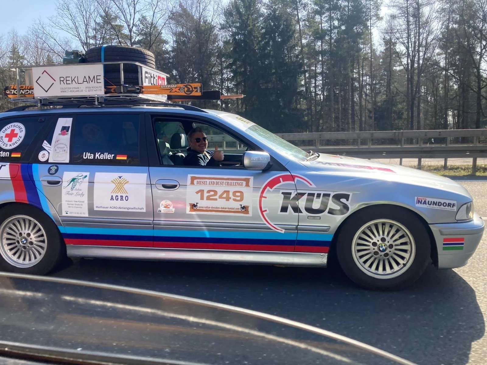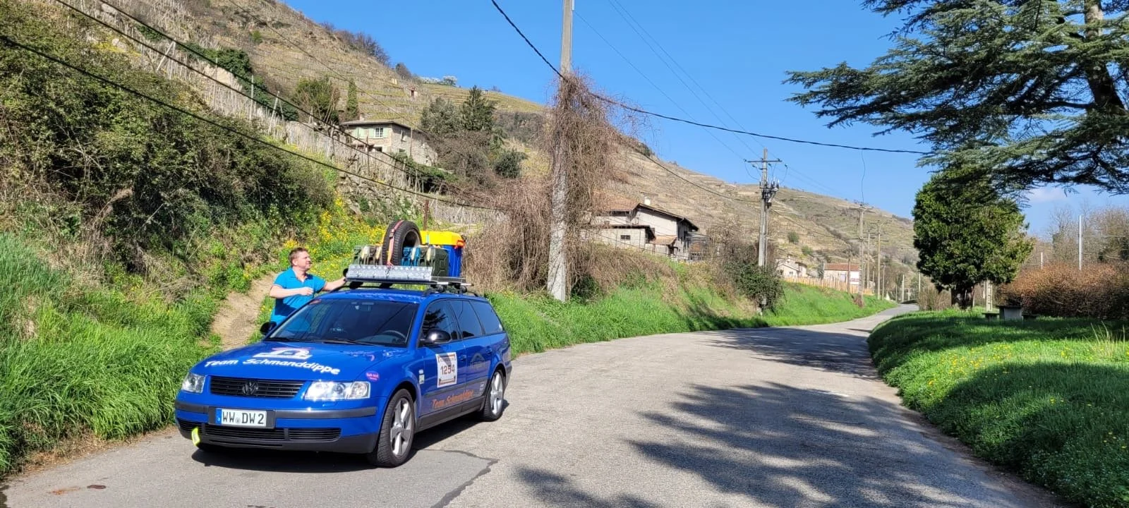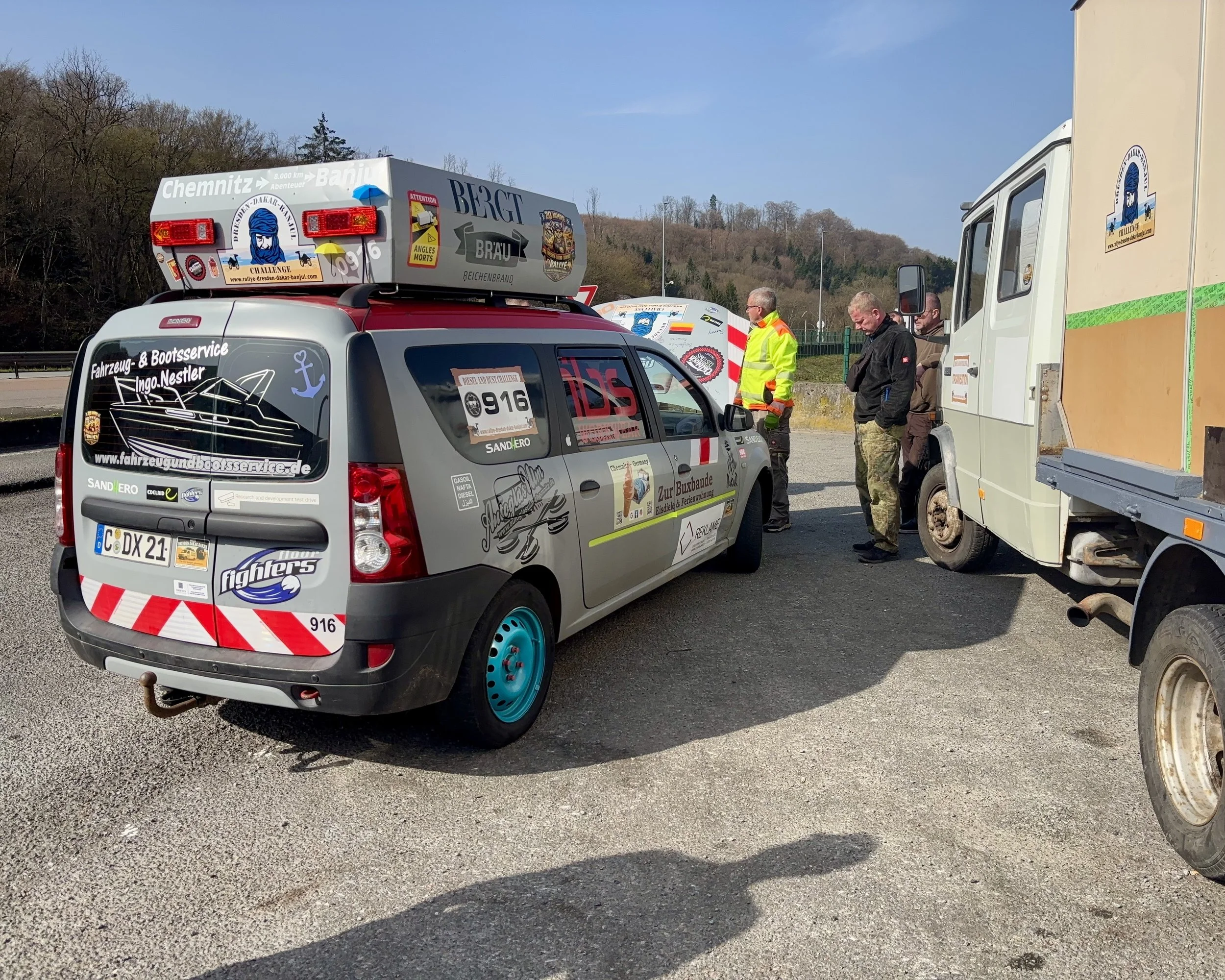 Immerhin ist die unruhige Fahrt des Ford Mondeo von Team „Kirschebike 1“ geklärt. Am Reifen hat sich eine Beule gebildet. Ein Reifenwechsel , und alles sollte wieder rund laufen.