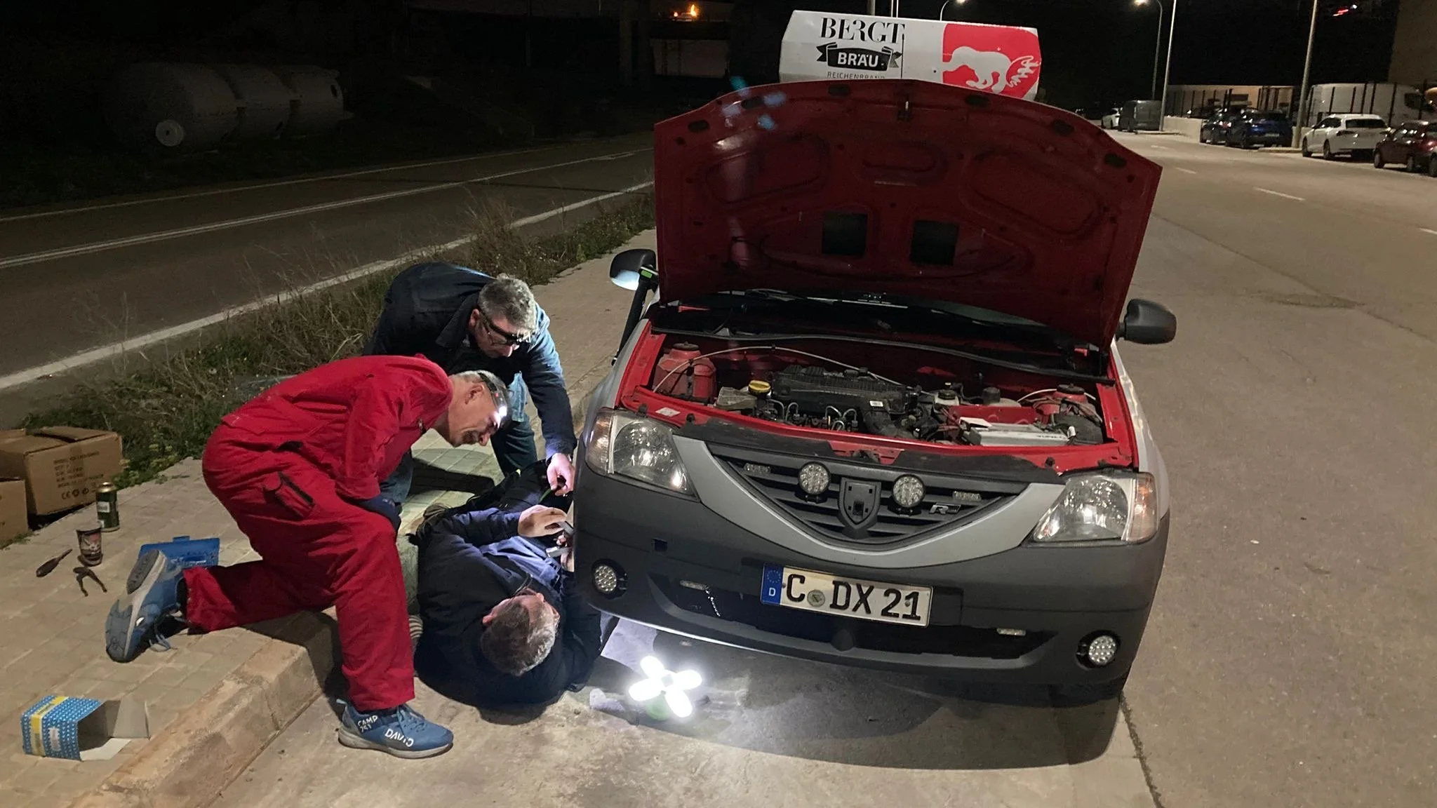 Und der Dacia von Team „Sand(h)ero“ hat am Abend halb zehn in Valencia endlich seinen heute Früh in Nîmes gekauften Dieselfilter eingebaut bekommen und zusätzlich noch einen neuen Luftfilter. Mal sehen was als nächstes kommt.