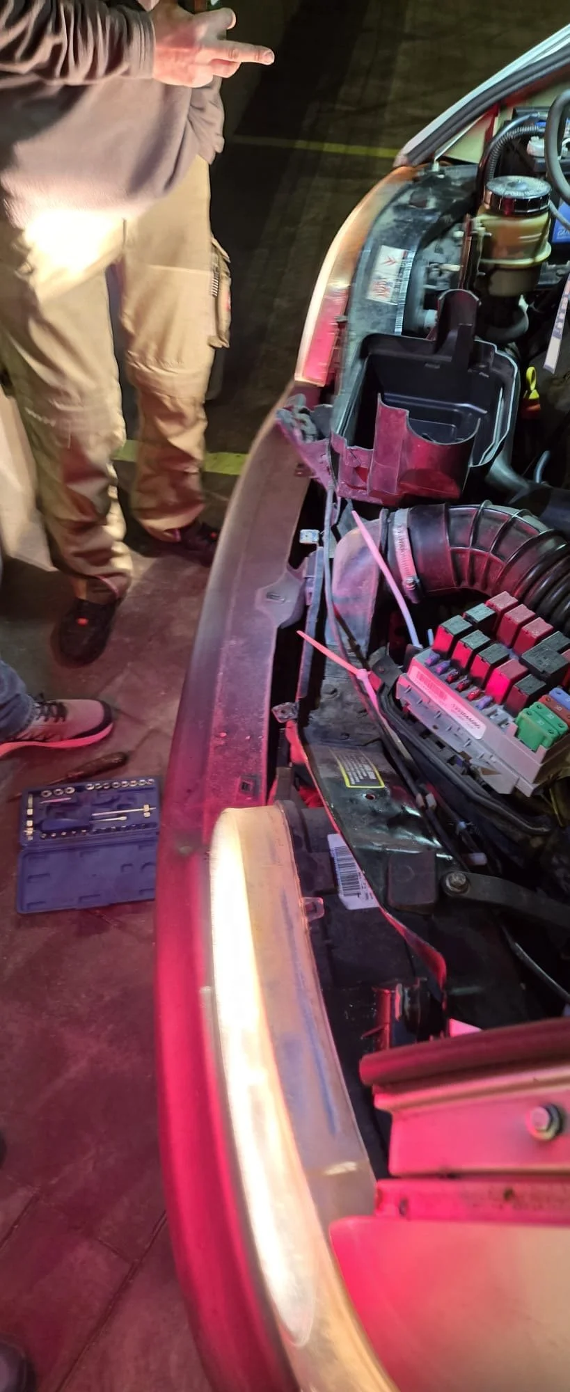 Ein weiteres Fahrzeug der Marke VW (Team „Ostblock-Customs“, VW T5) hat ebenfalls Motor-Aussetzer. Vermutlich ist der Pumpe-Düse-Leitungssatz-Kabelbaum (befindet sich im Motor) verschlissen. Es gibt jetzt zwei Optionen. Morgen wird eine deutschsprachige Werkstatt aufgesucht und eventuell kann der VW dort repariert werden. Eine weitere Option ist ein per Flieger nachreisender Rallye-Teilnehmer der das Bauteil nach Agadir mitbringt.