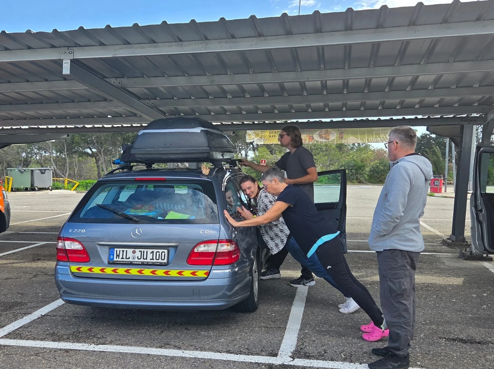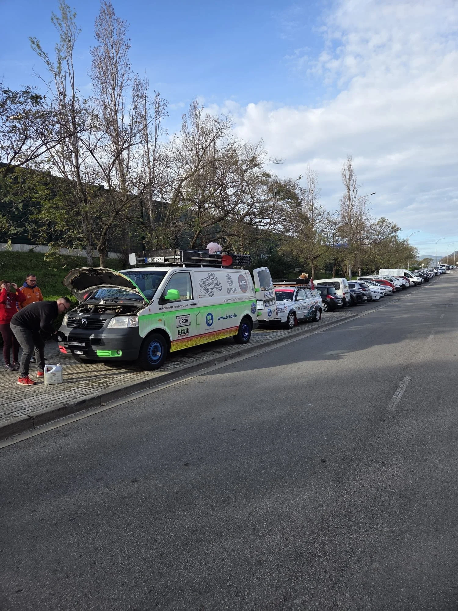 Der VW Sharan (schon wieder VW!) von Team „Kirschebikes“ fährt immer noch im Notlauf - manchmal. Irgendwas mit dem Turbo. Aber es geht voran.