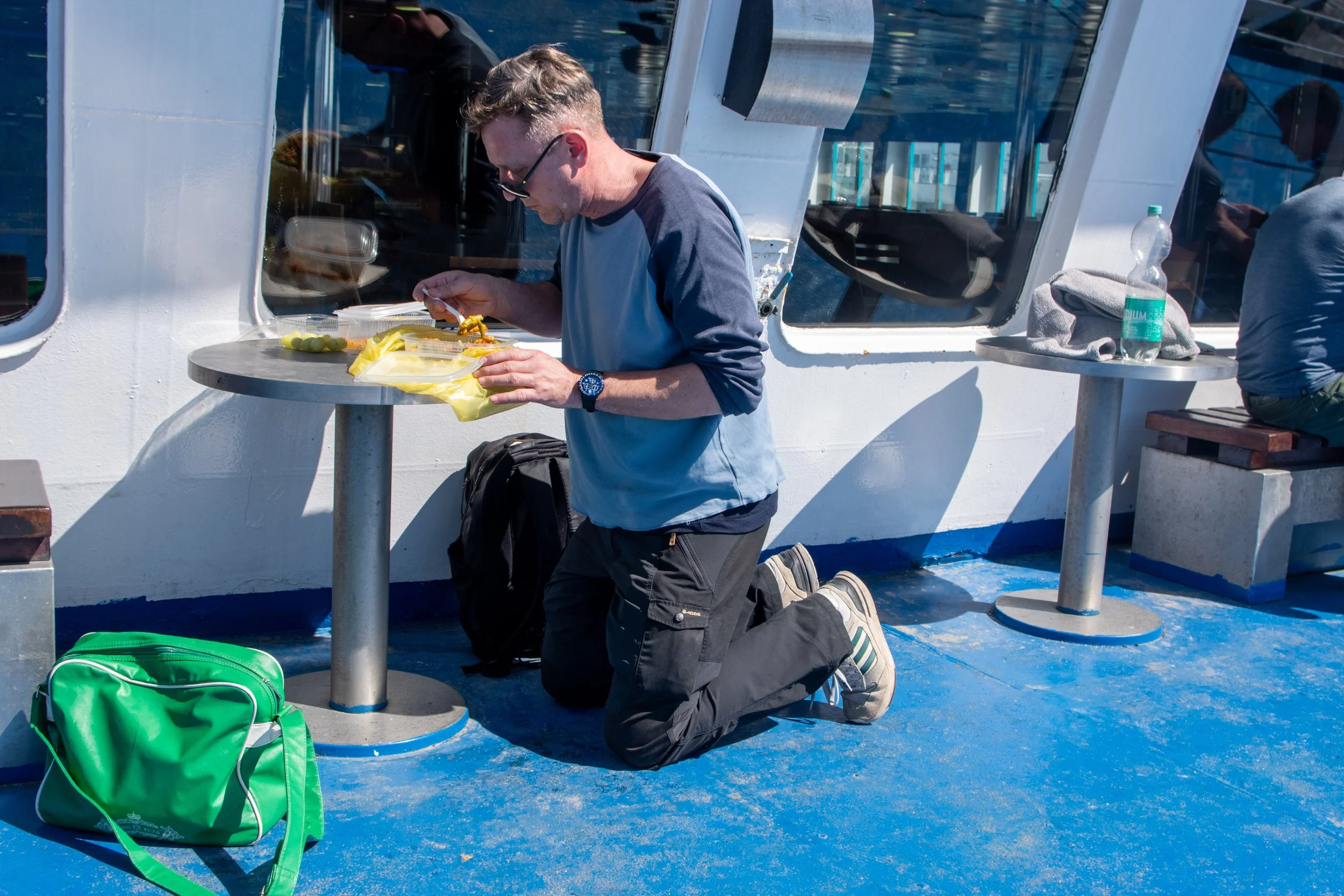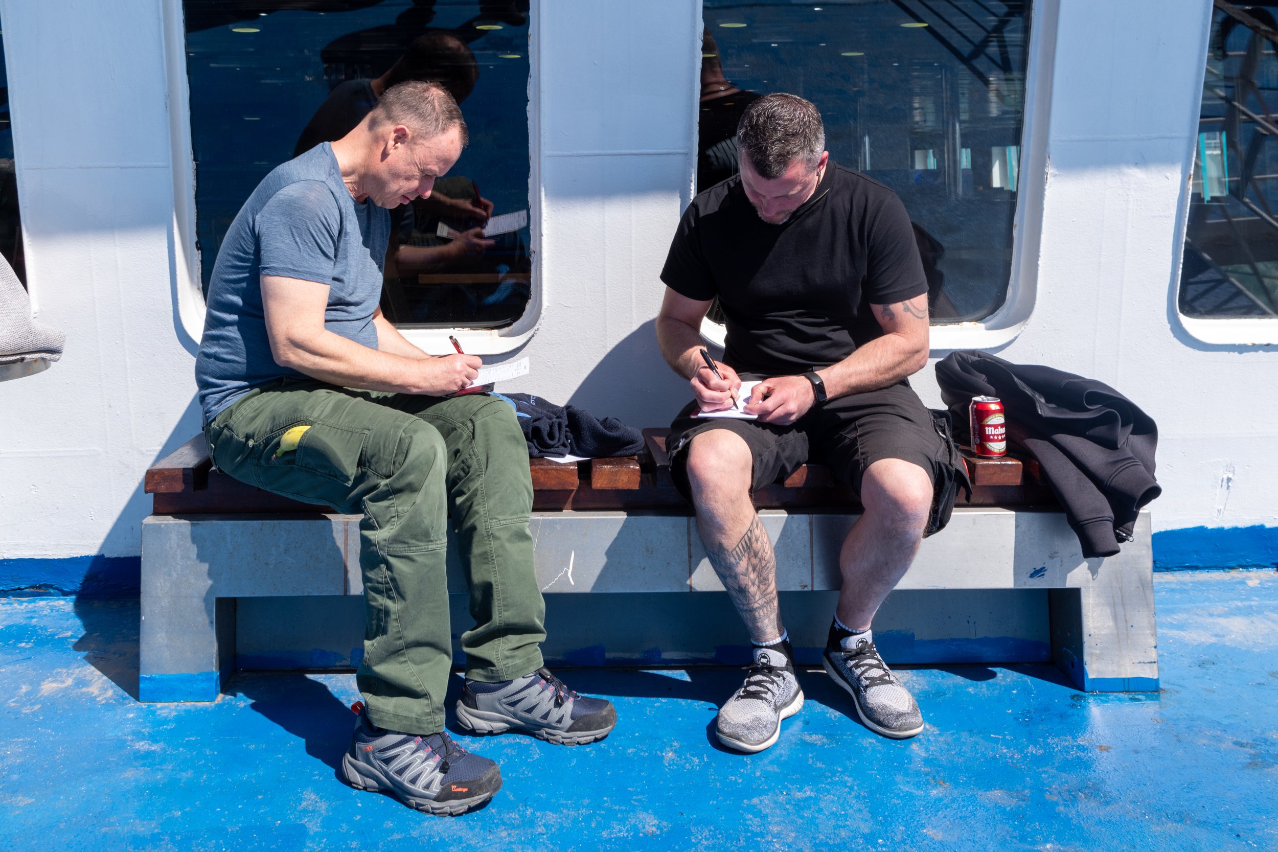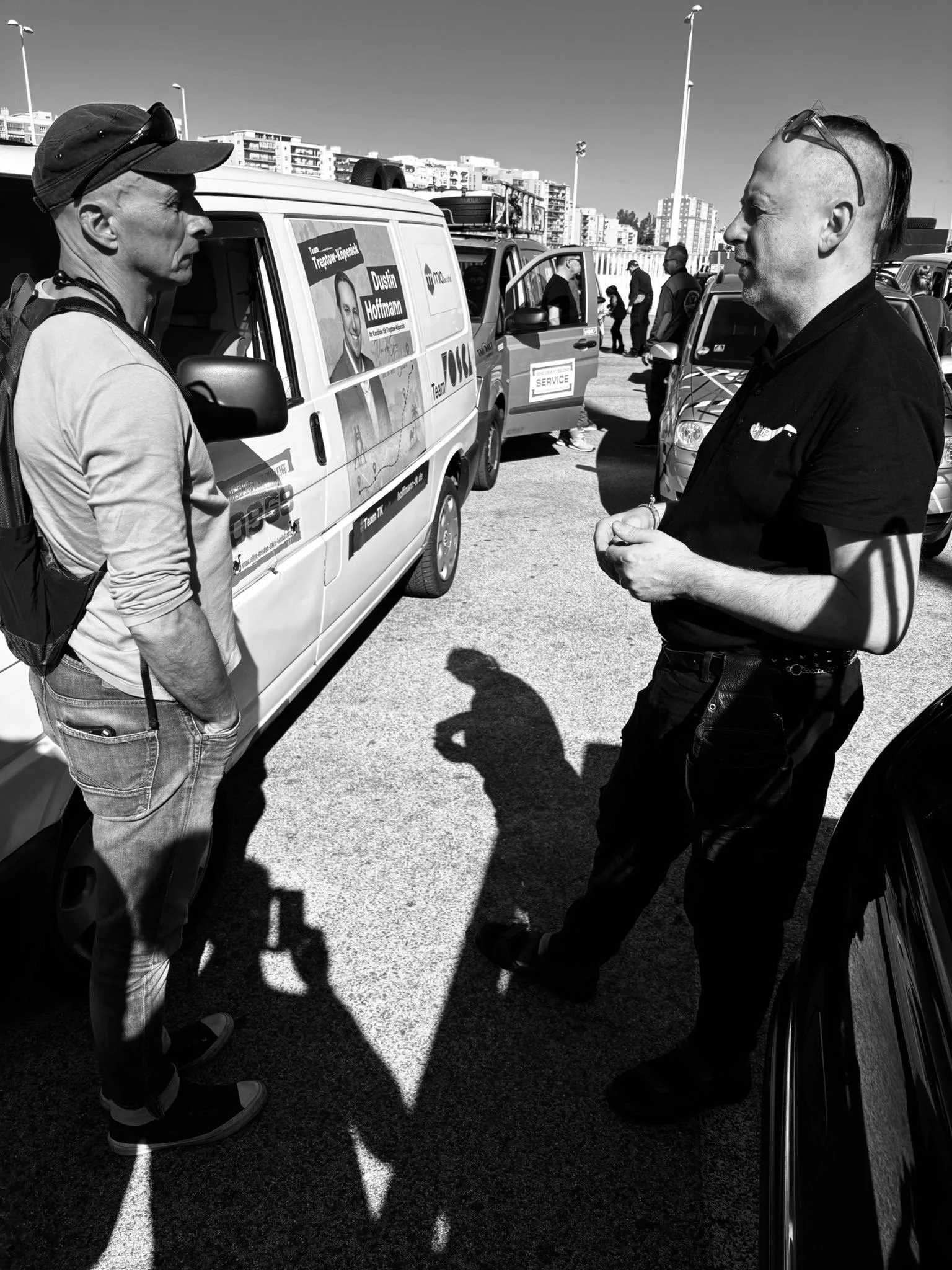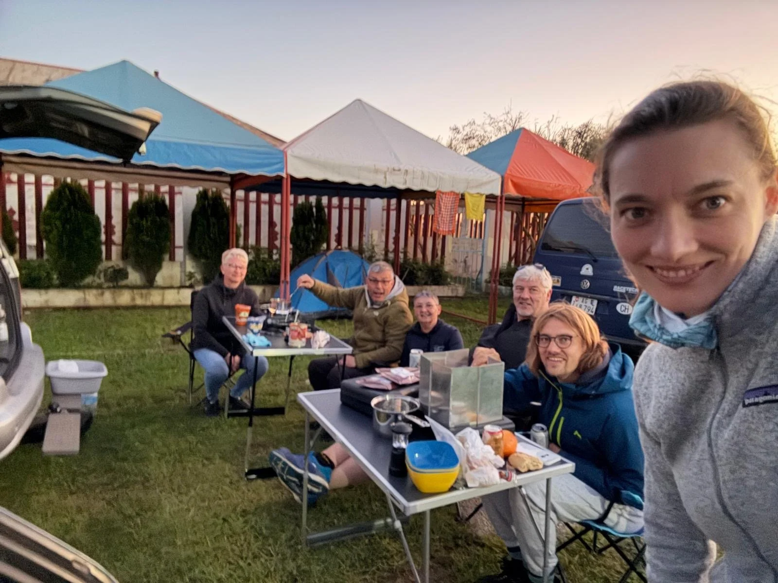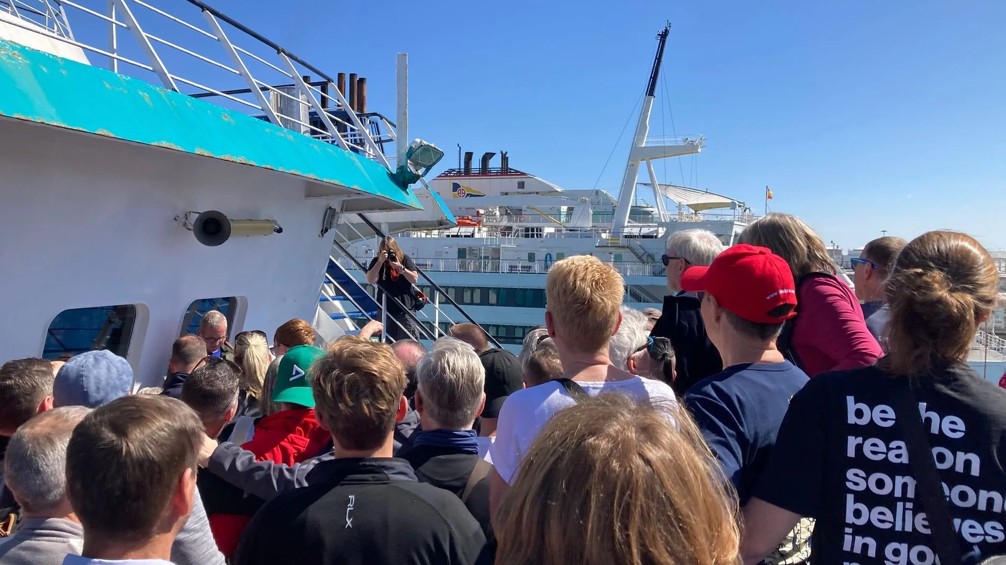 Die Zeit zwischen der Ankunft im Hafen und dem Ablegen der Fähre wurde für ein Briefing und zum näheren Kennenlernen genutzt. Schließlich trafen hier zum ersten Mal fast alle Teams aufeinander. Fünf Teams waren bereits vor ein paar Tagen nach Marokko eingereist und das Team „Ostblock-Customs“ musste noch auf Ersatzteile warten. Sie wollten aber die letzte Fähre heute schaffen.
