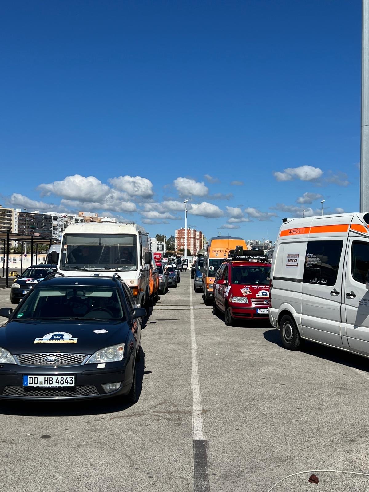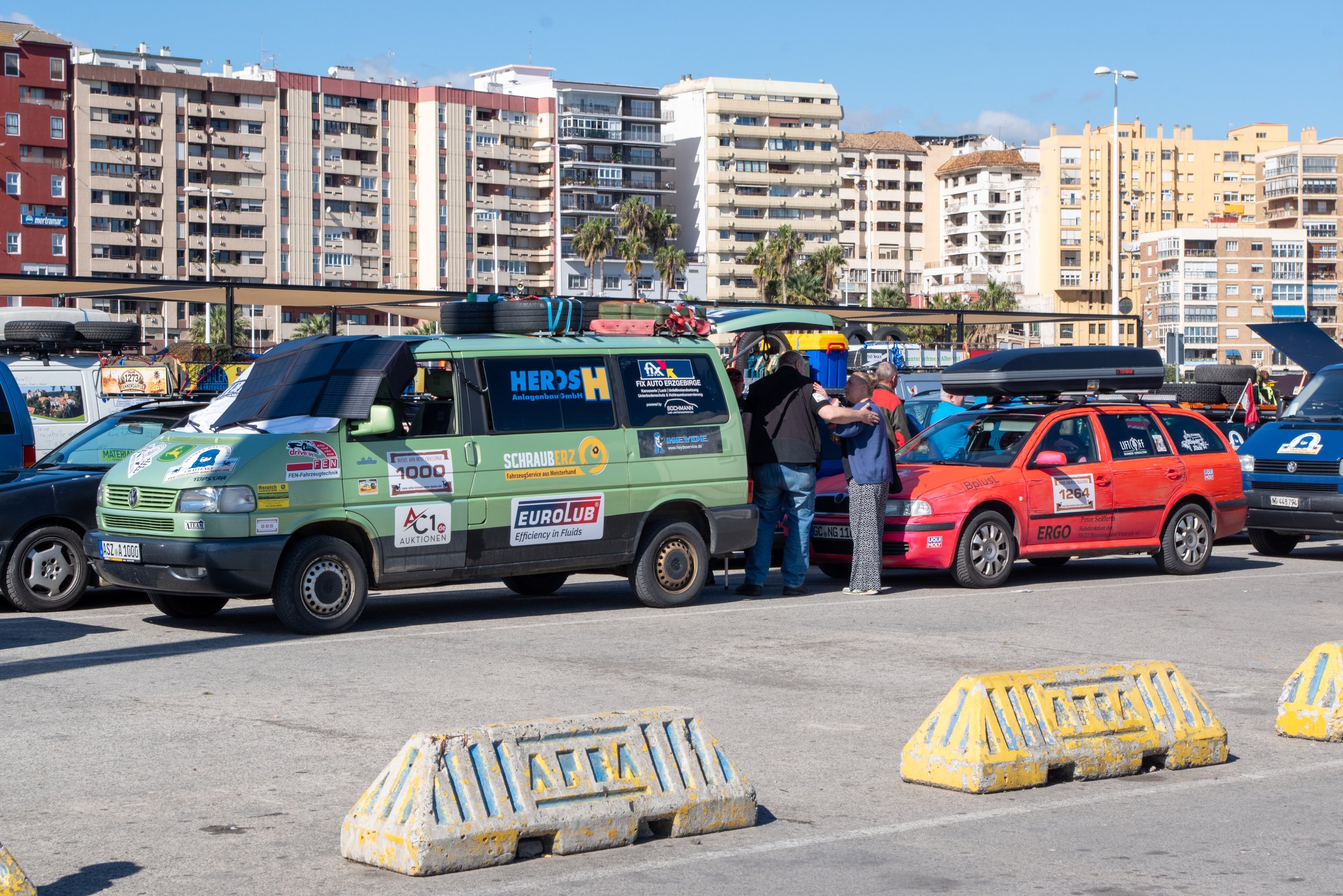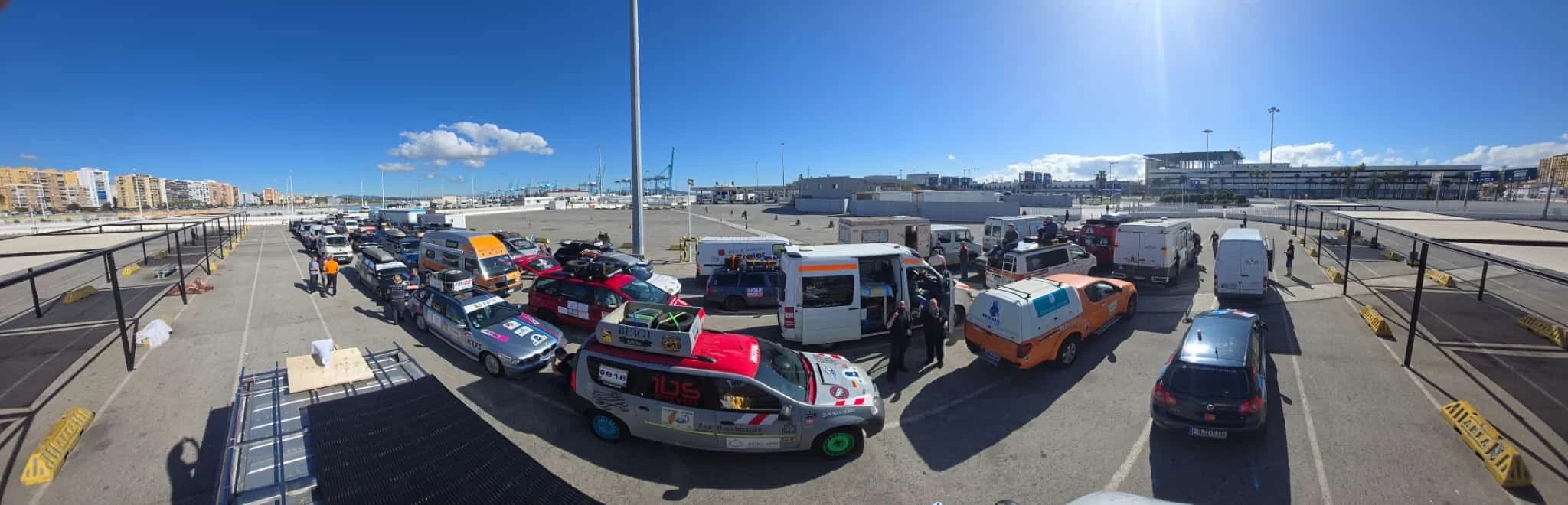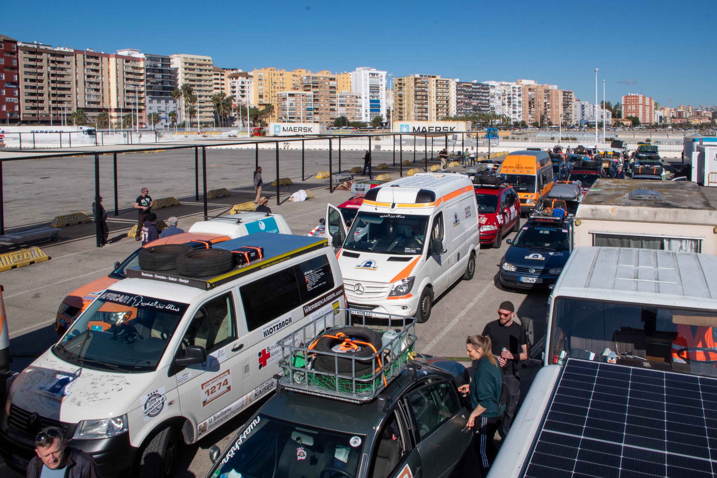Nach einer kalten Nacht auf dem Campingplatz in San Roque – für manche Teams war es die erste Nacht ohne den Komfort eines Hotelzimmers – mussten nur noch wenige Kilometer bis zum Hafen von Algeciras zurückgelegt werden.