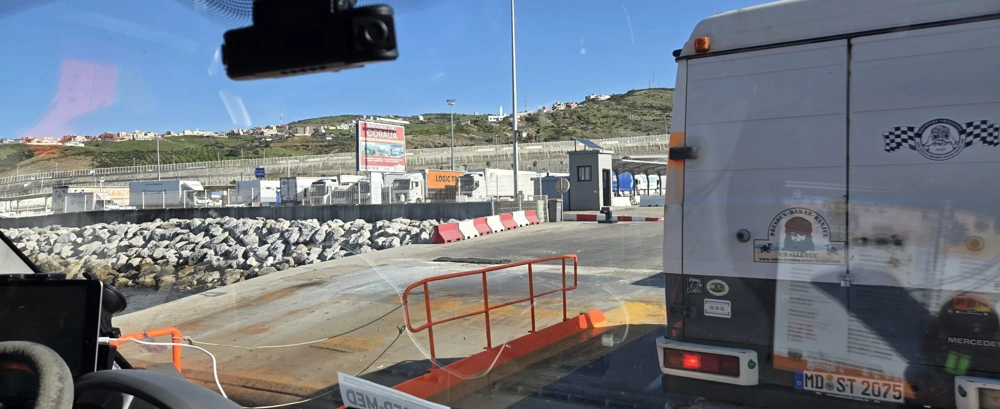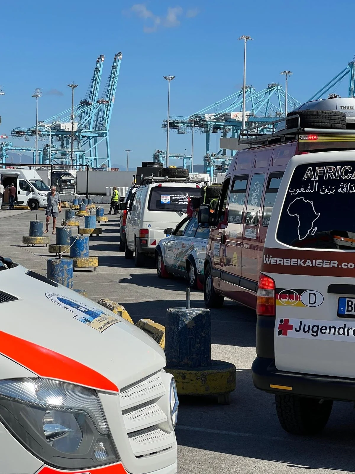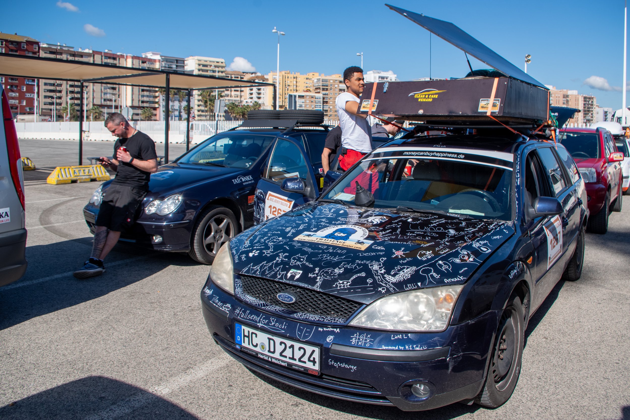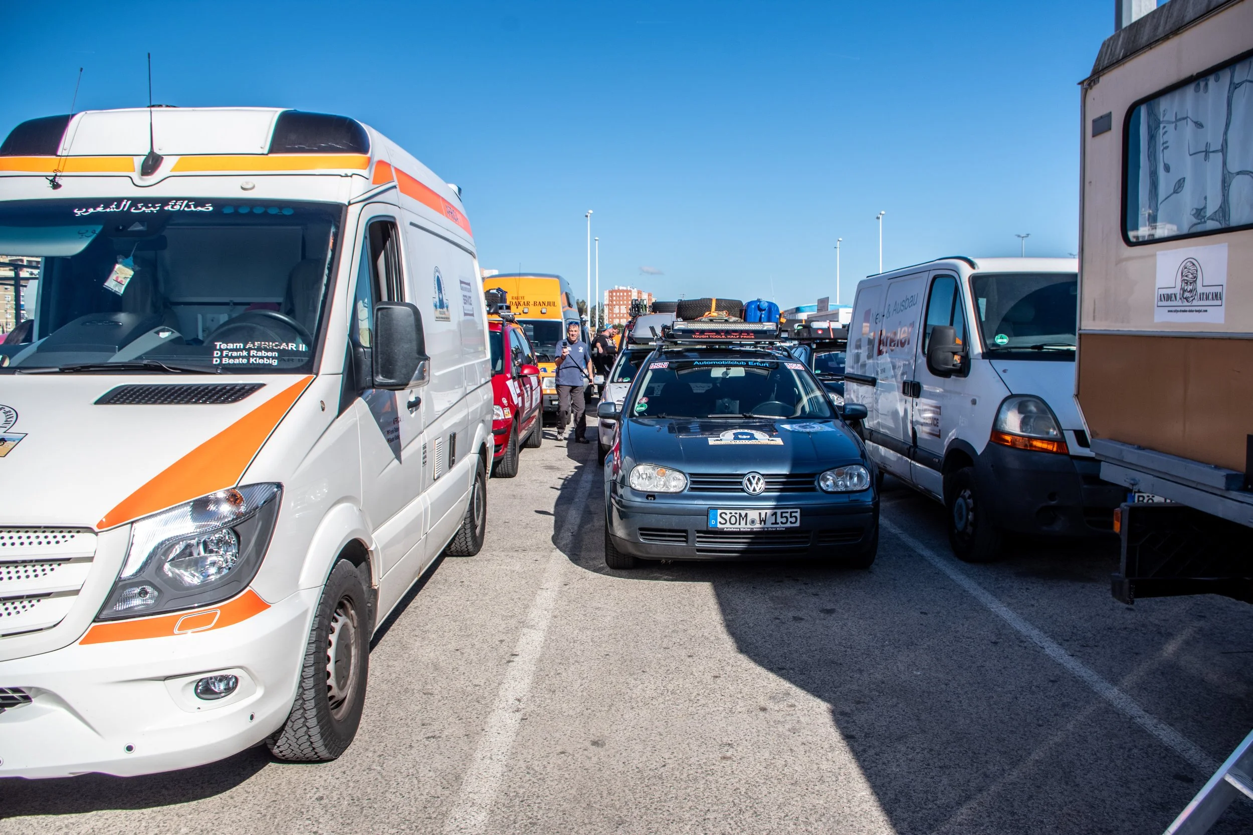 Nach einer kalten Nacht auf dem Campingplatz in San Roque – für manche Teams war es die erste Nacht ohne den Komfort eines Hotelzimmers – mussten nur noch wenige Kilometer bis zum Hafen von Algeciras zurückgelegt werden.