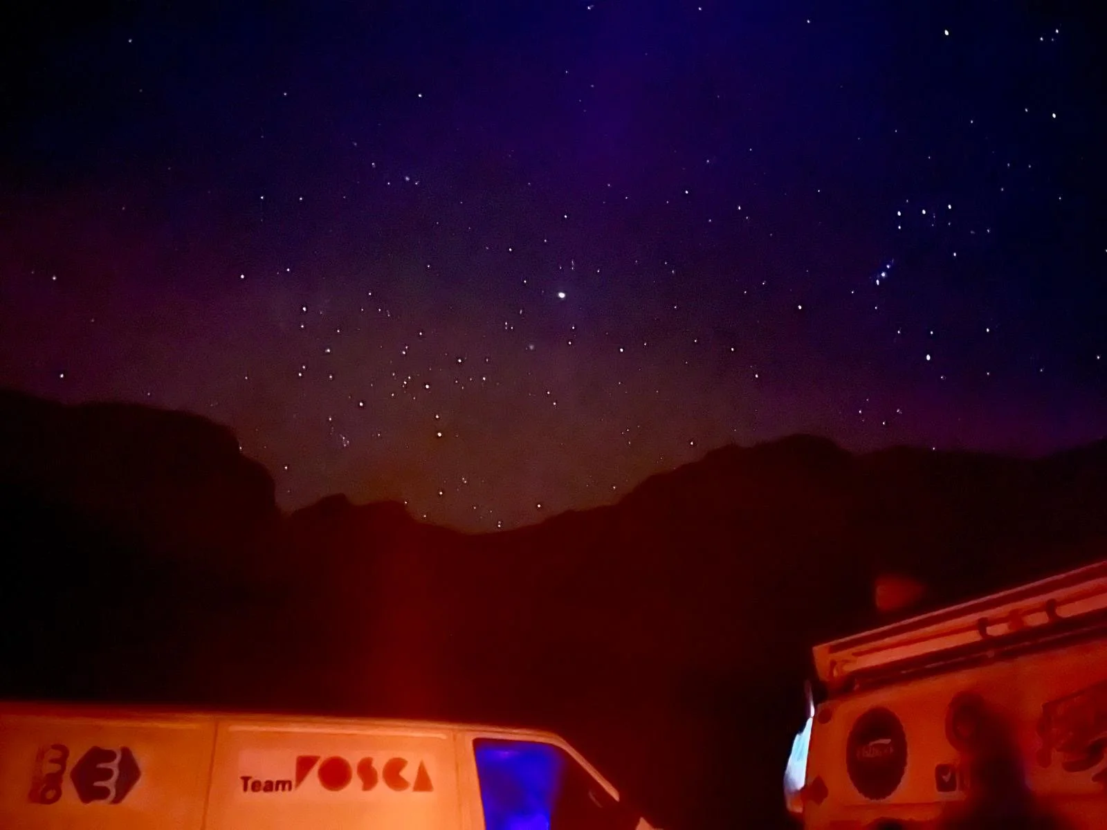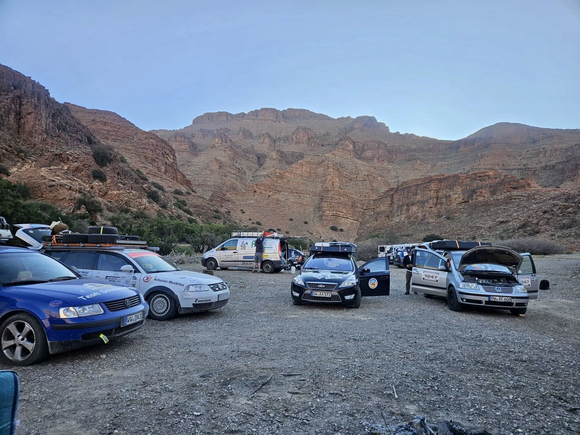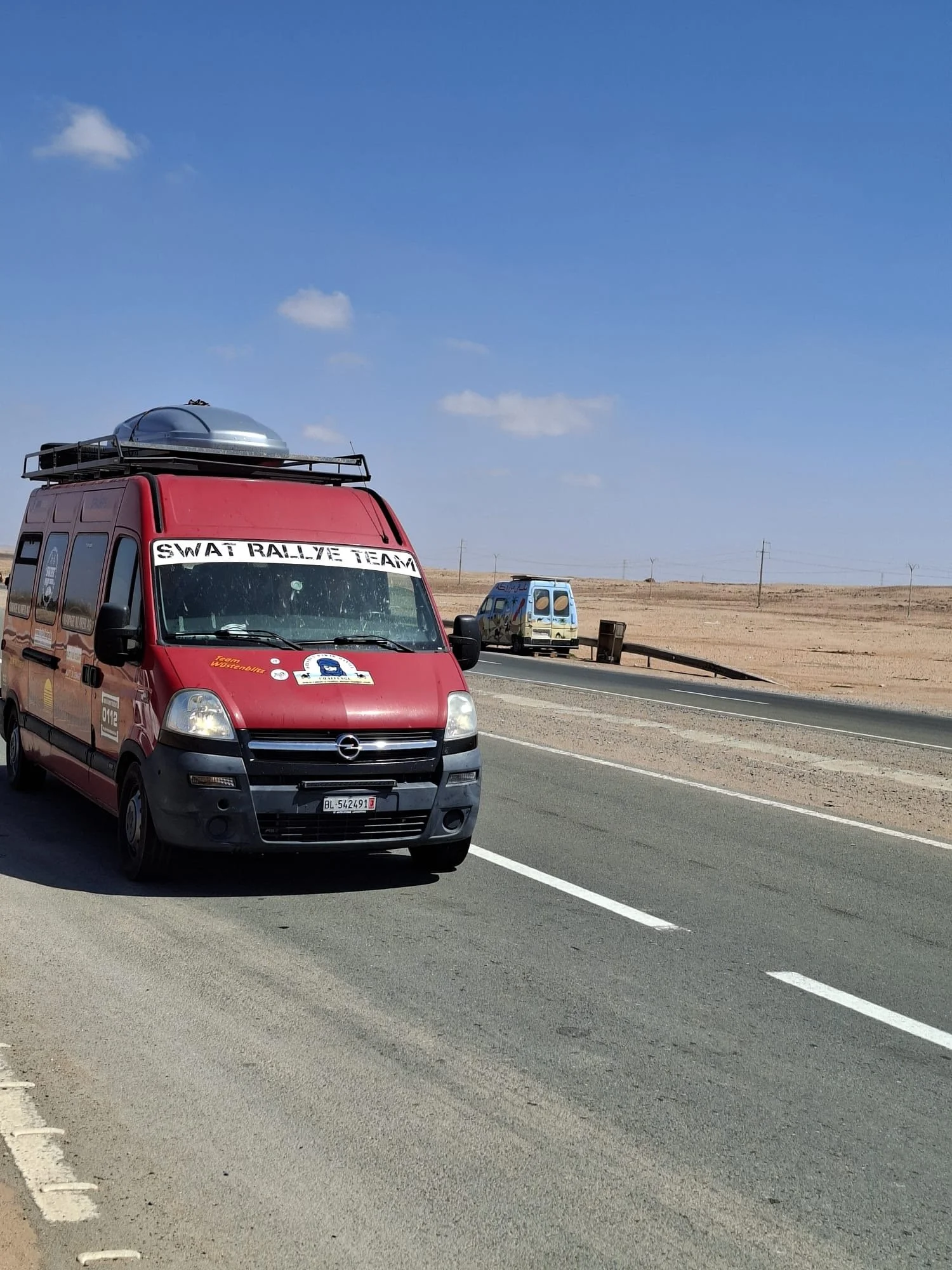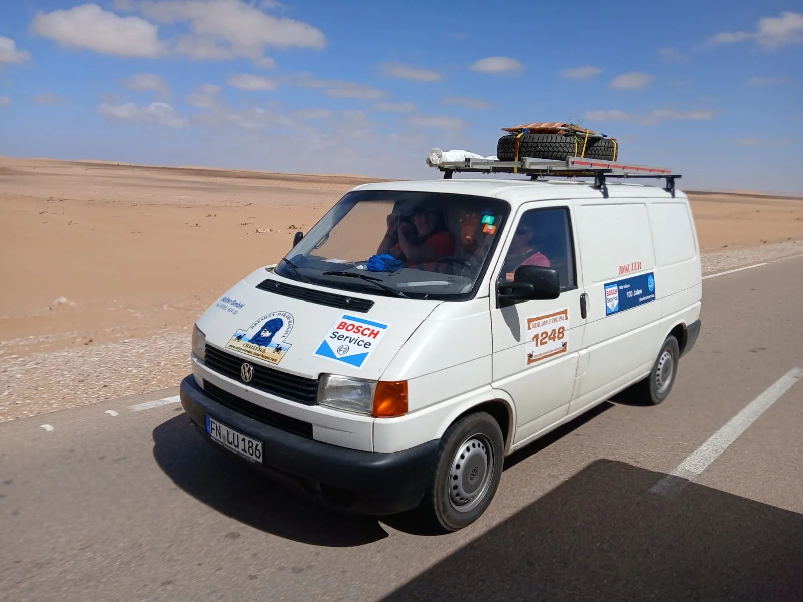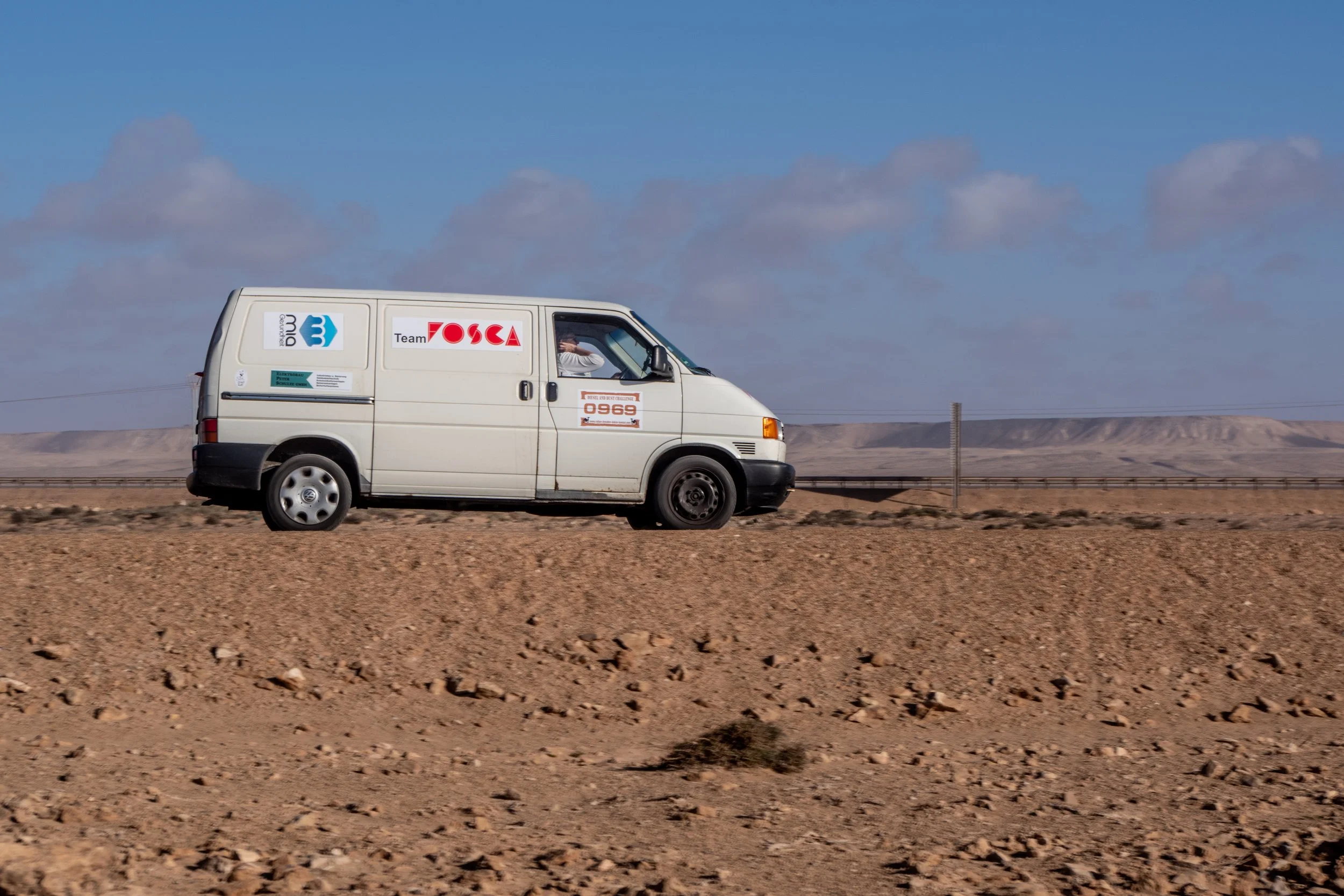 Leider gibt es auch noch einen weiteren Havaristen. Der VW T5 von Team „Africa 1“ fährt nicht mehr mit voller Leistung. Er hat einen defekten Ladeluftkühler und muss morgen in Laayoune eine Werkstatt aufsuchen.