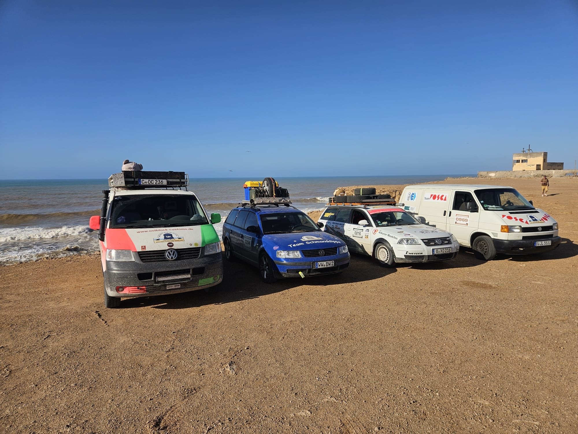 Ein großer Teil der Rallye-Teams schlief letzte Nacht in Aglou Plage mit dem Geräusch der Brandung des Atlantiks ein und wachte mit demselben Geräusch im Ohr auch wieder auf.