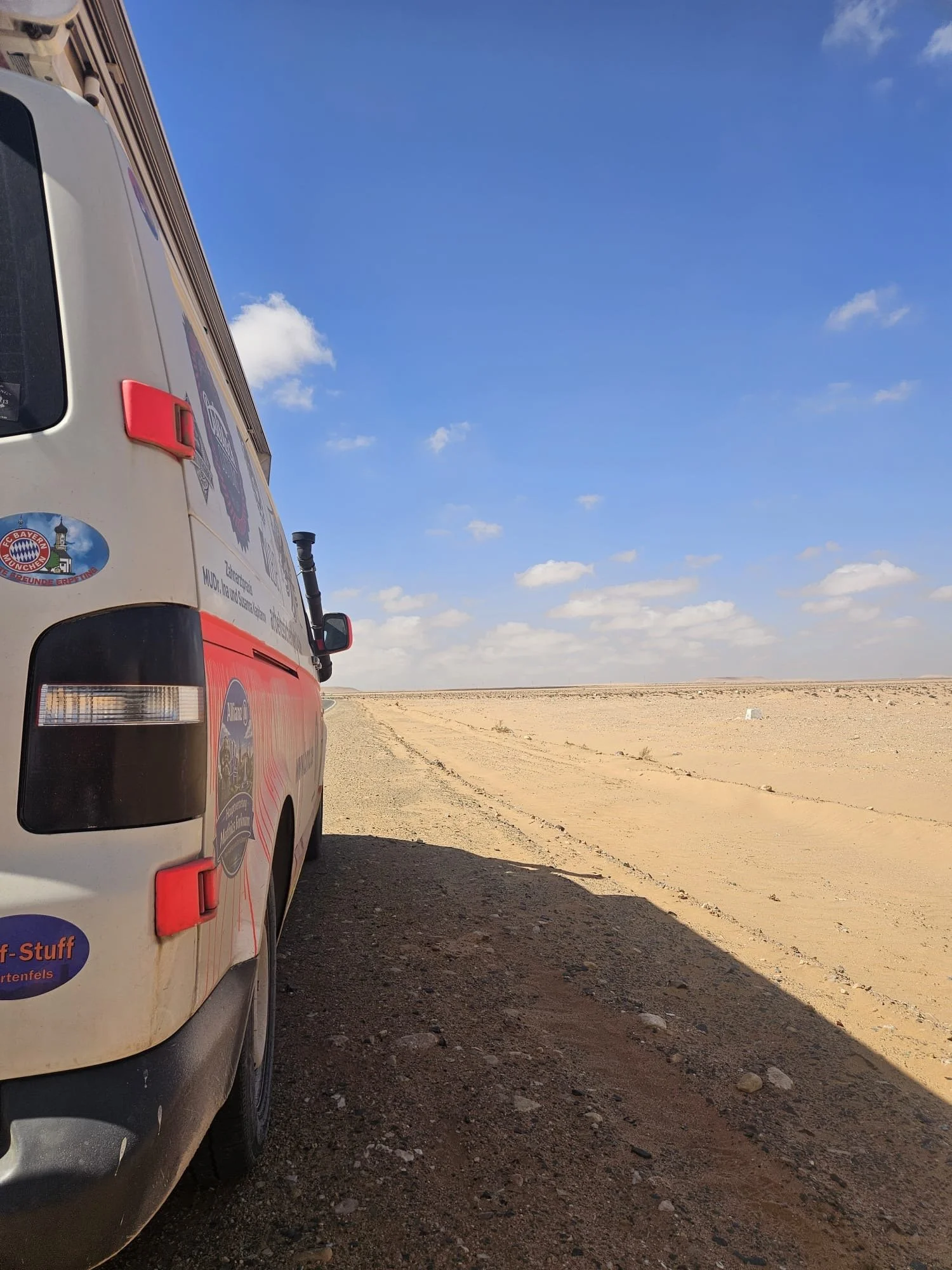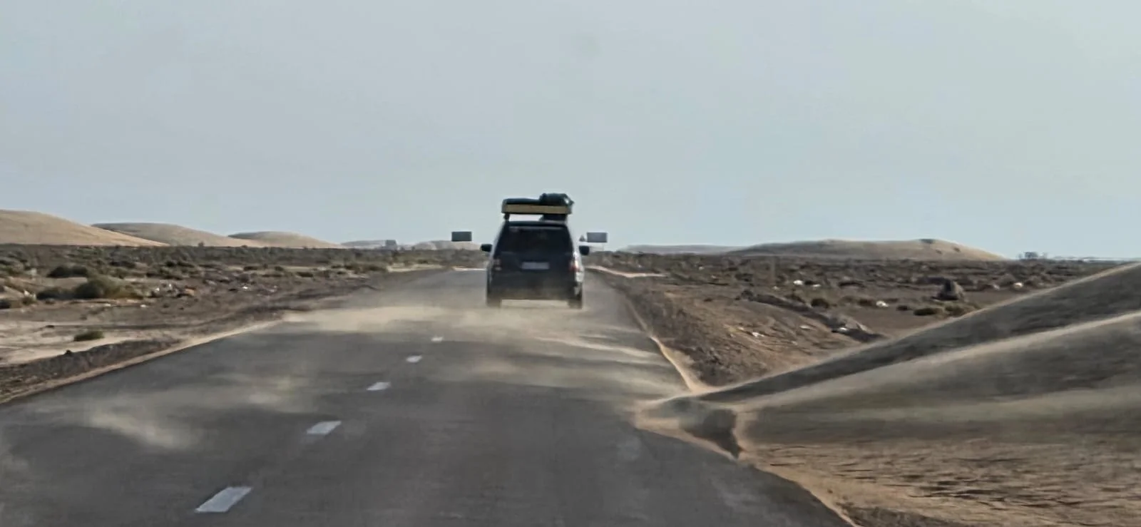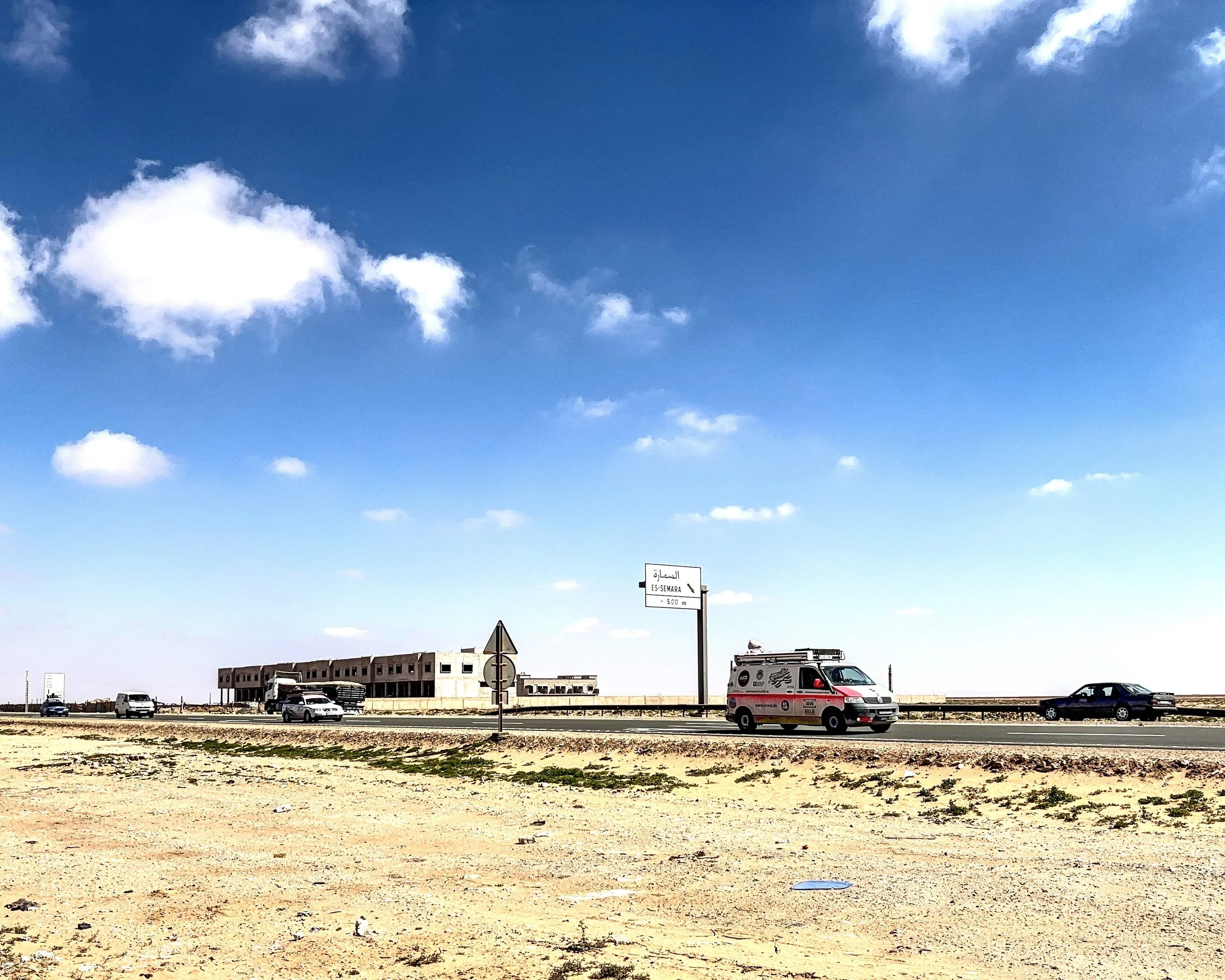 Irgendwo hinter Guelmim trafen dann unweigerlich alle auf dem Weg nach Laayoune aufeinander. Denn ab jetzt gibt es eigentlich nur noch eine Richtung und somit nur noch eine Straße für uns alle - immer dem Sonnenuntergang entgegen.